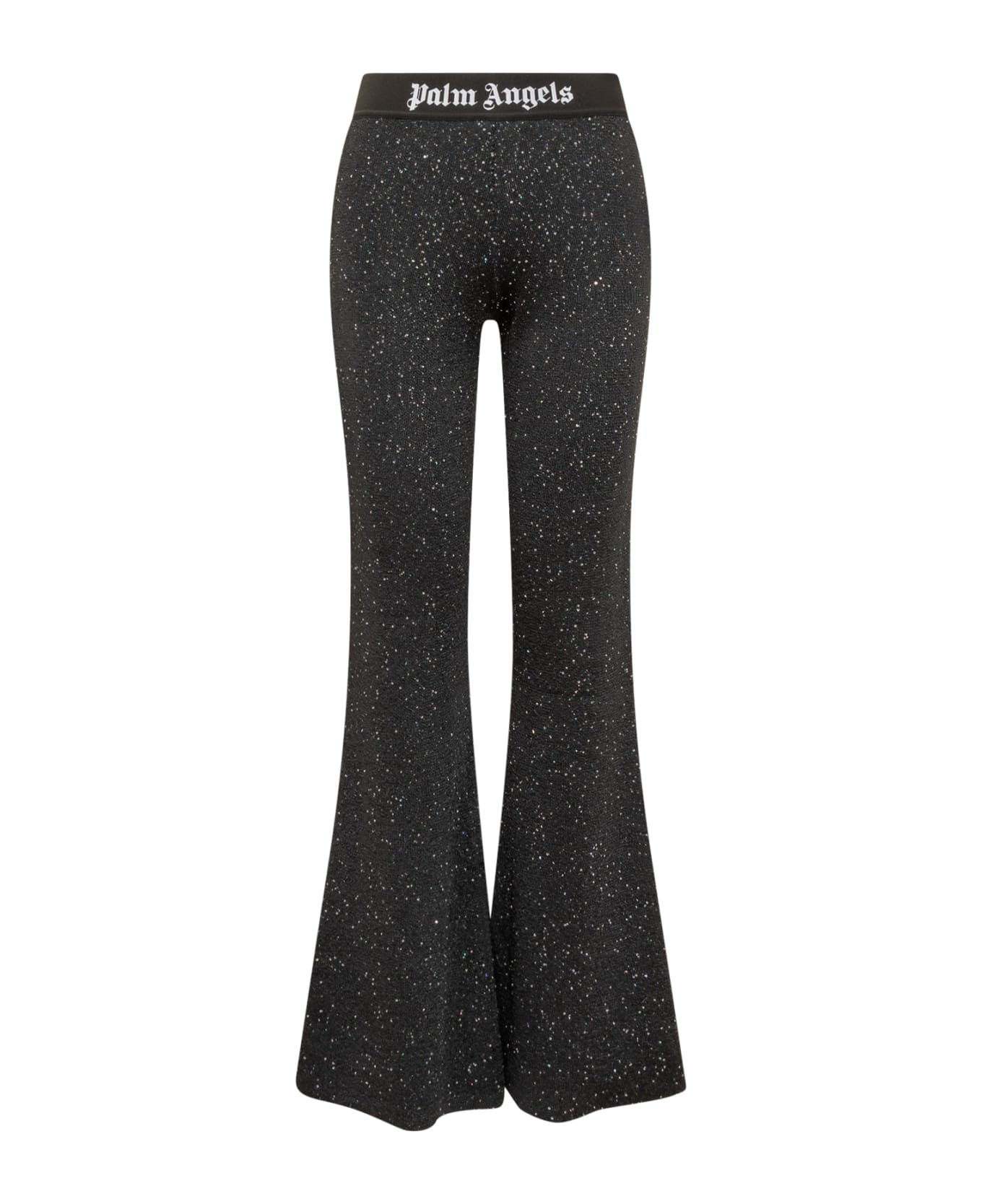 Black long trousers. Elastic waistband with logo. Wide leg. All-over sequins detail. Composition: 76% Polyester, 18% Viscose, 6% Polyamide