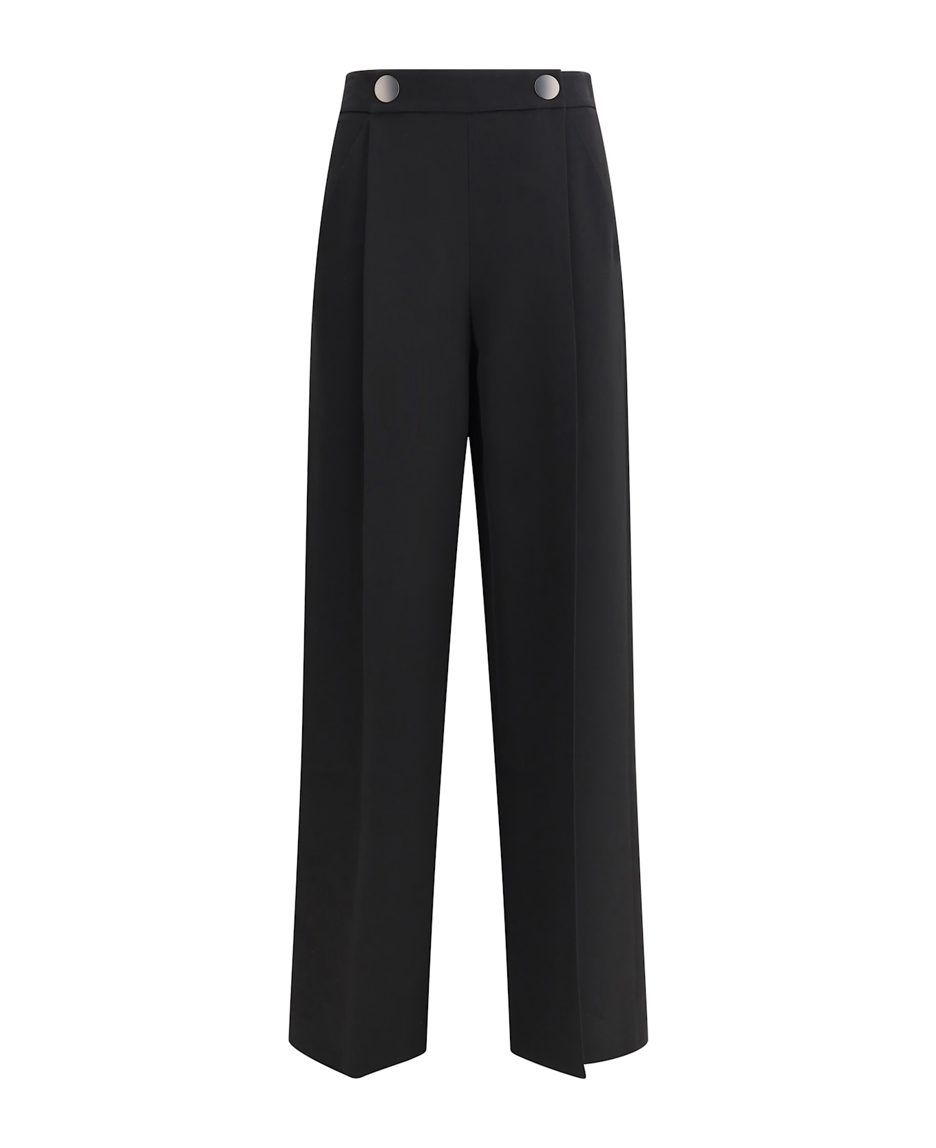 Giorgio armani's silk crepe cady one-dart pants express understated elegance. the pressed dart cut enhances the straight line of the model, while the strap is embellished with two special buttons that add a distinctive detail. the side zipper closure and two slanted pockets complete the design, making these pants an ideal choice for a feminine and sophisticated look.