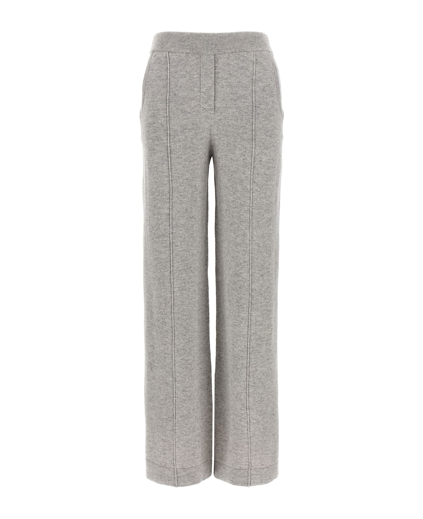 Melange wool and cashmere carded trousers, pockets with metal detail, elastic waistband, wide and straight leg,