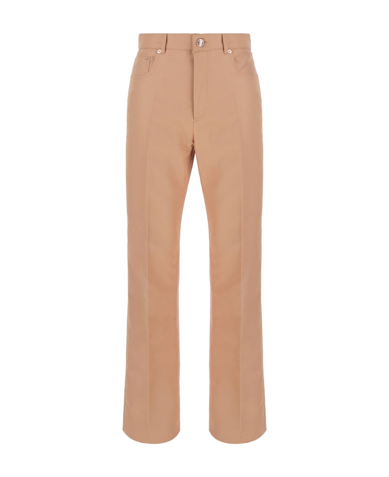 Chino pant realized in polyester characterized by central ironed pleats. -Belt loops at the waist -Concealed zip and a single visible button closure at the front -Five classic pockets