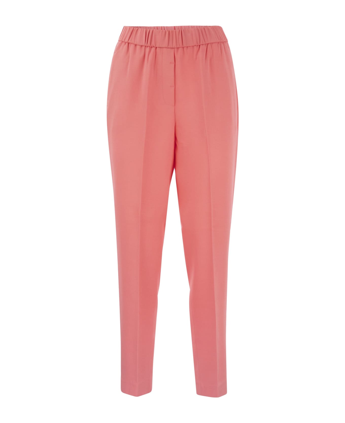 Stretch viscose crepe cady trousers with elasticated waist. Finished with a fluid and extremely comfortable fit. Perfect to wear every day or for special occasions. - Side slit and welt pockets on the back - Elasticated waistband - Loose fit - Slightly raised waist DESIGNER ID: P04572Z 02747 524 Composition: 96% Viscose, 4% Elastane Lining: 61% Acetate, 39% Cupro