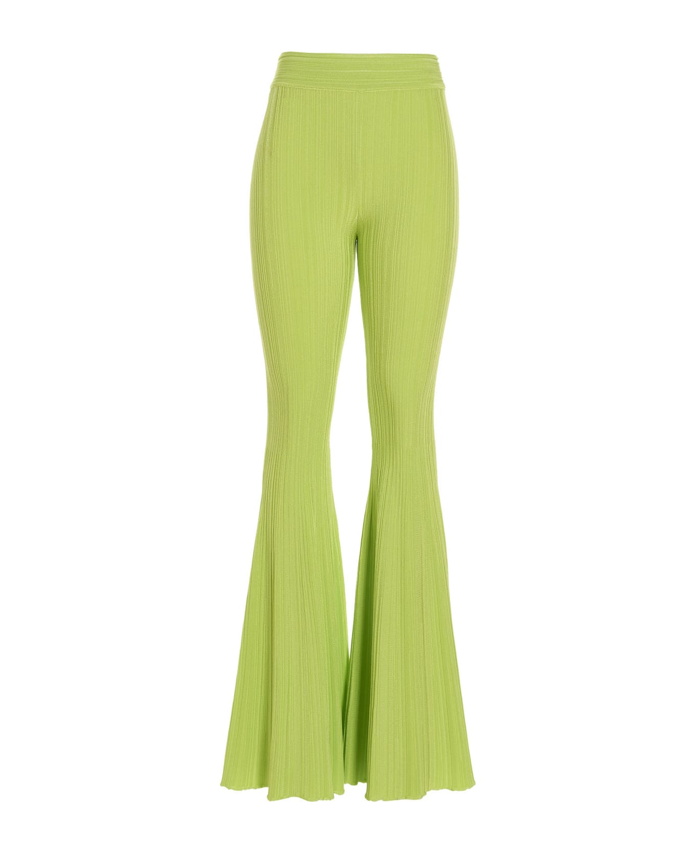 'Smilla' high waisted pants with flared leg and vertical ribbed fabric.
