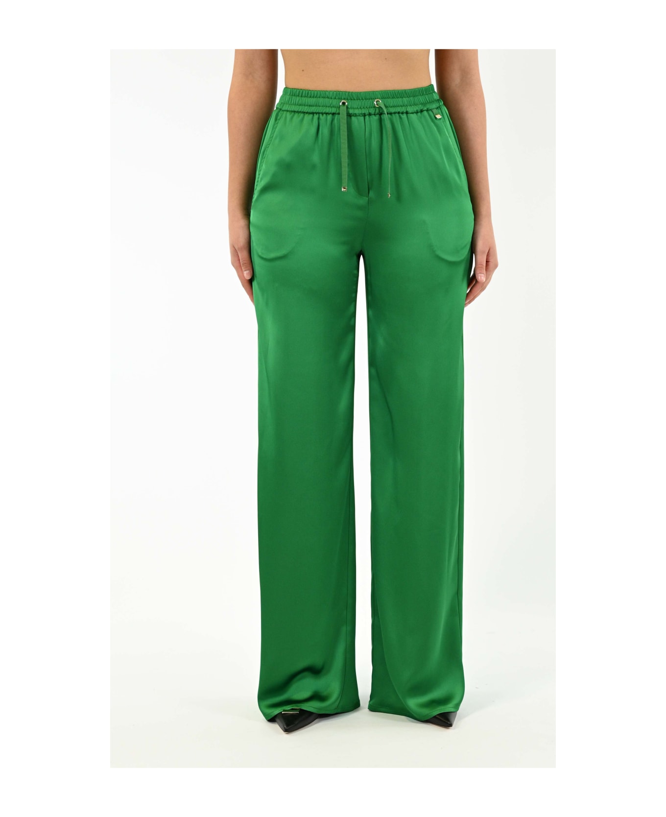 soft satin high-waisted trousers with elastic waistband and drawstring