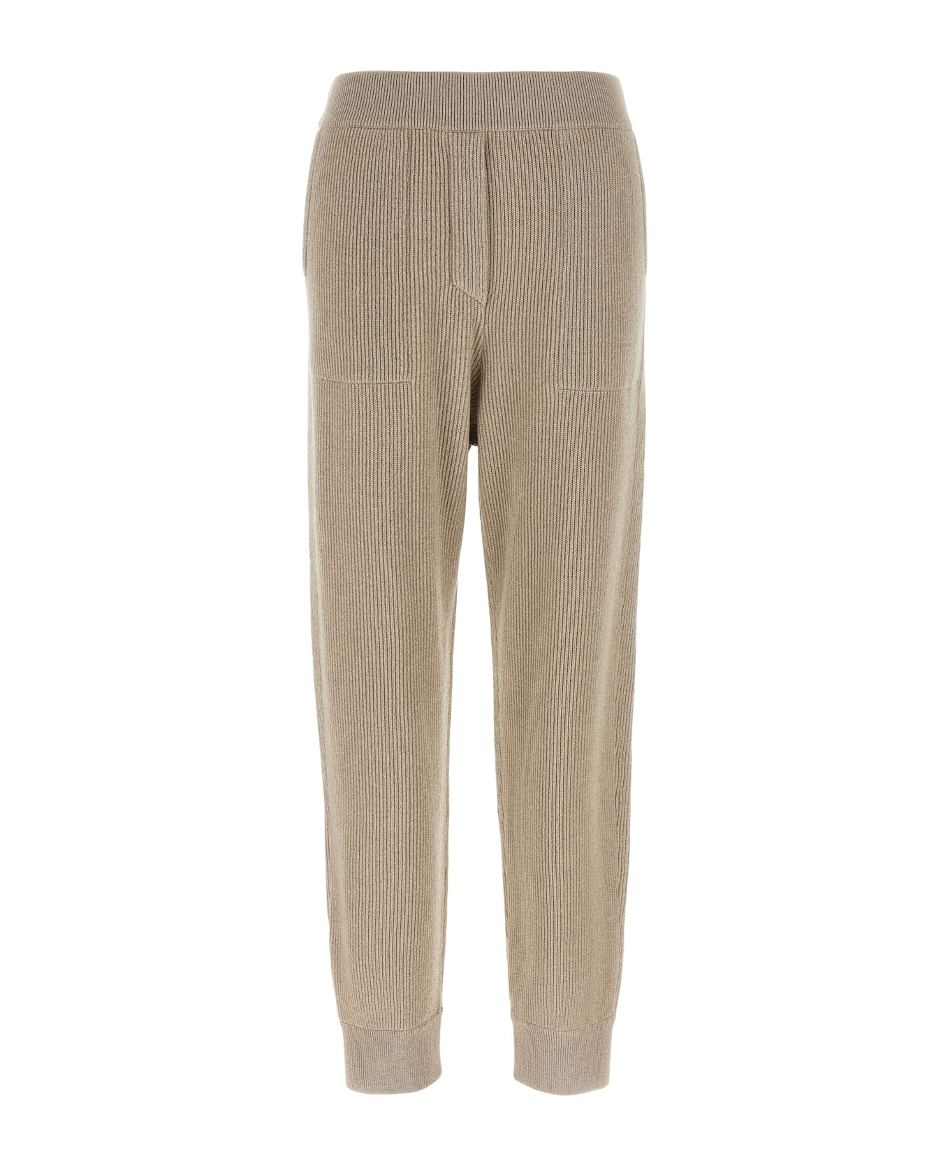 'Sparkling' cashmere knit pants crafted on the English rib with lamé thread, pull-up model with slightly low crotch, elastic waistband, trompe l'oeil flap, pockets, ankle cuffs. Composition: 76% ws 18% vi 6% pm