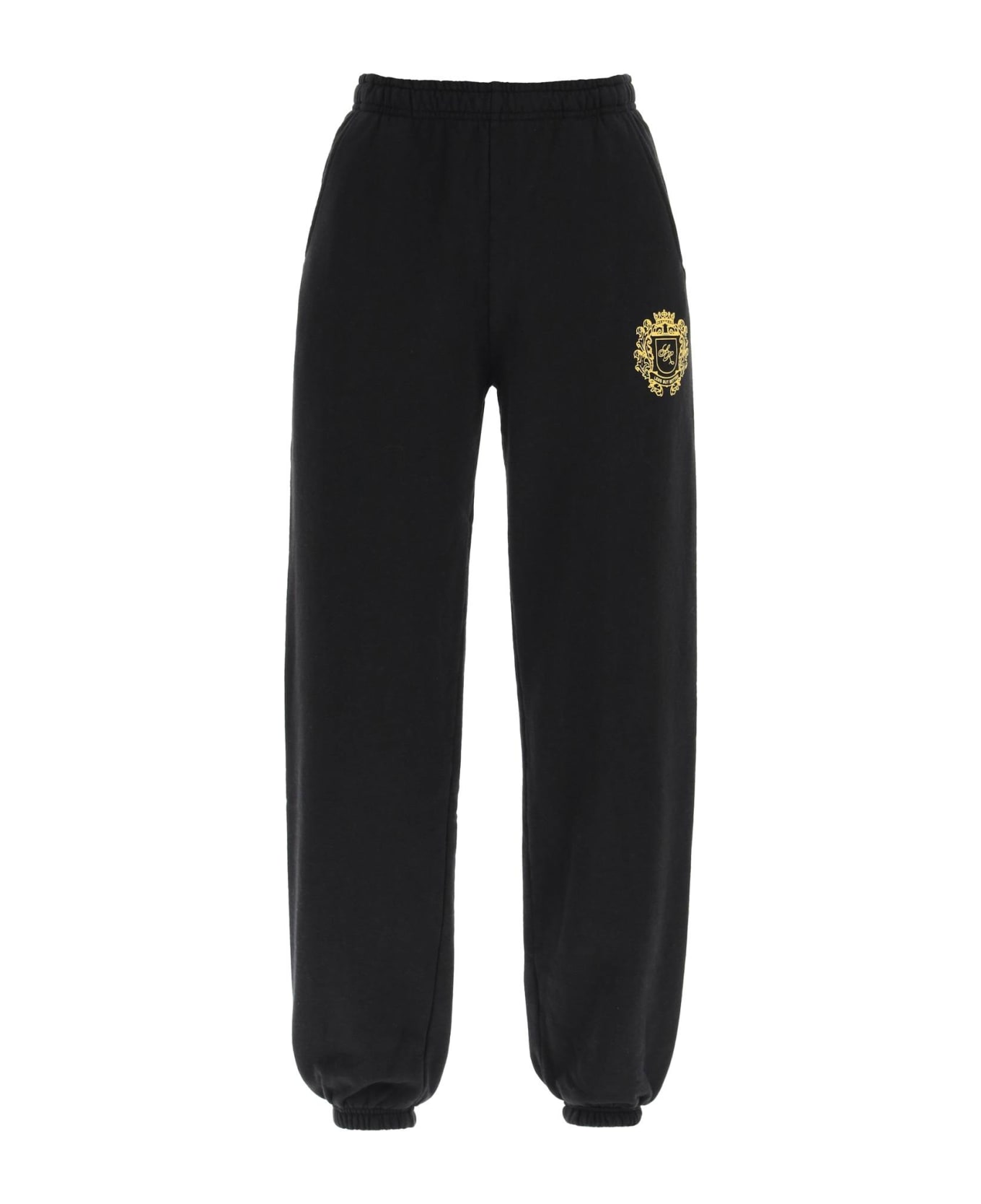 Sporty & Rich sweatpants in brushed-back cotton fleece with front logo print. Loose-fitting style featuring elasticated cuffs, elasticated waistband with internal drawstring, curved side pockets and a rear patch pocket. The model is 177 cm tall and wears a size XS.
