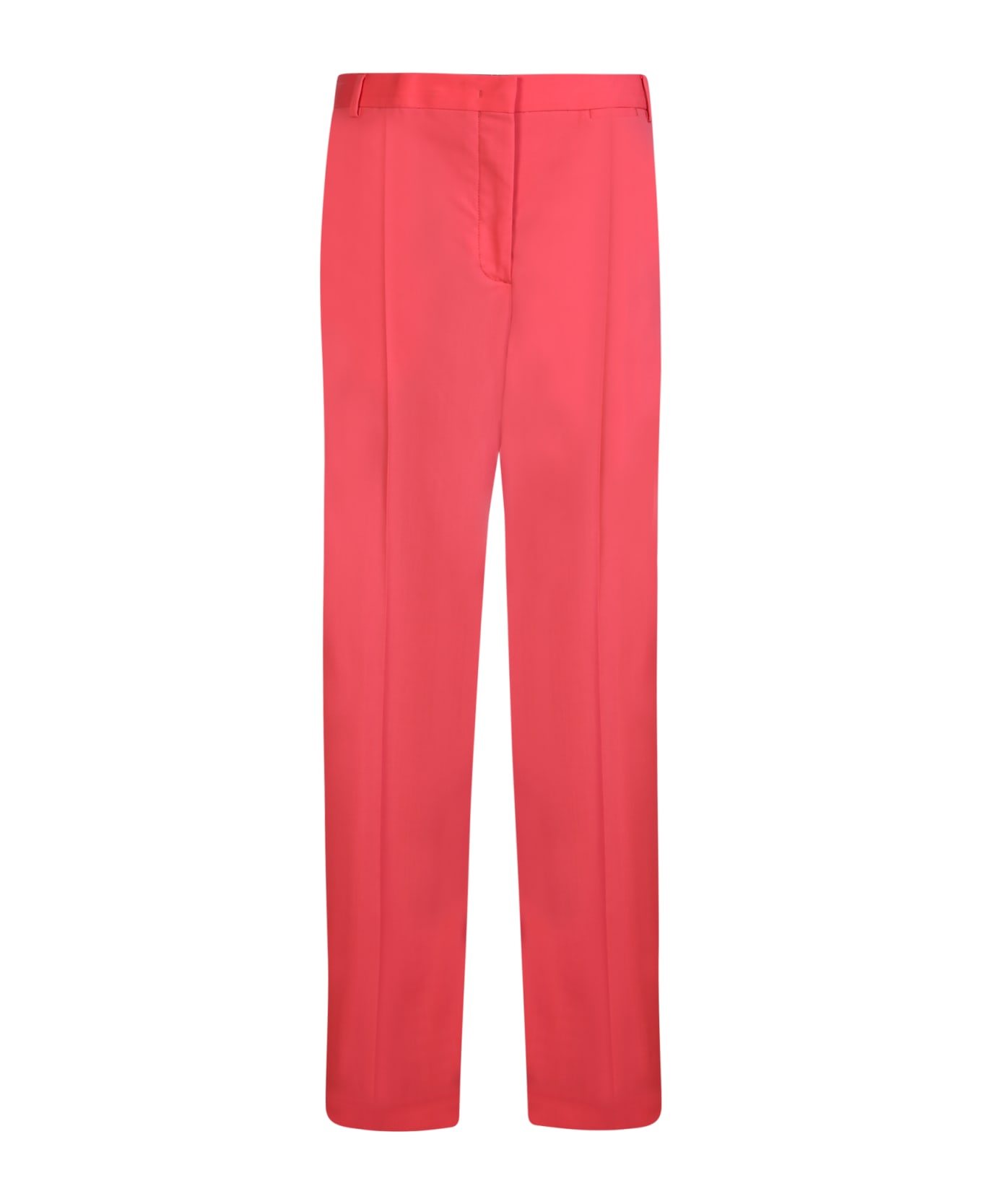 Concealed front fastening. Belt loops. Two side slit pockets. Two rear welt pockets. Straight leg. Color: Fuchsia