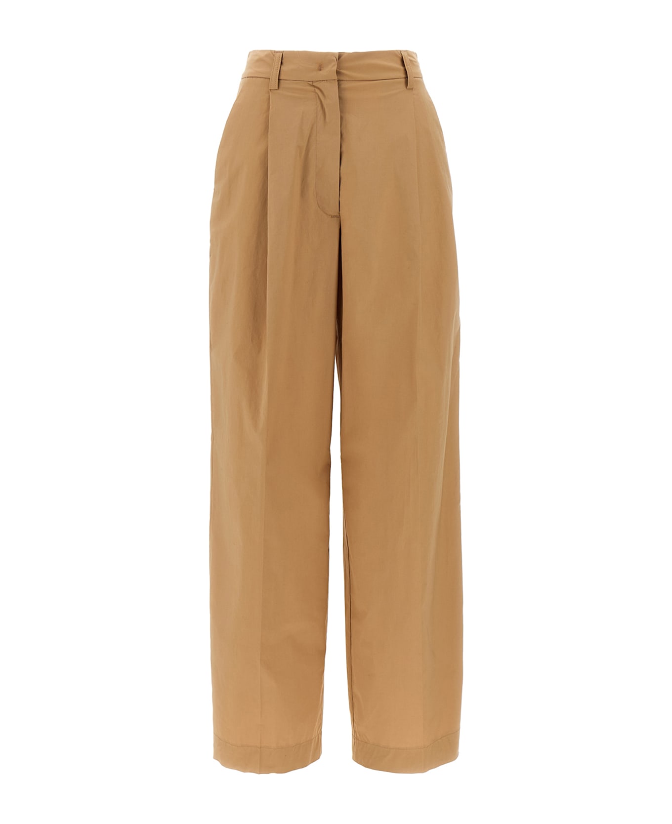 Slightly stretch cotton trousers, slightly wide straight leg style, front zip and button closure.
