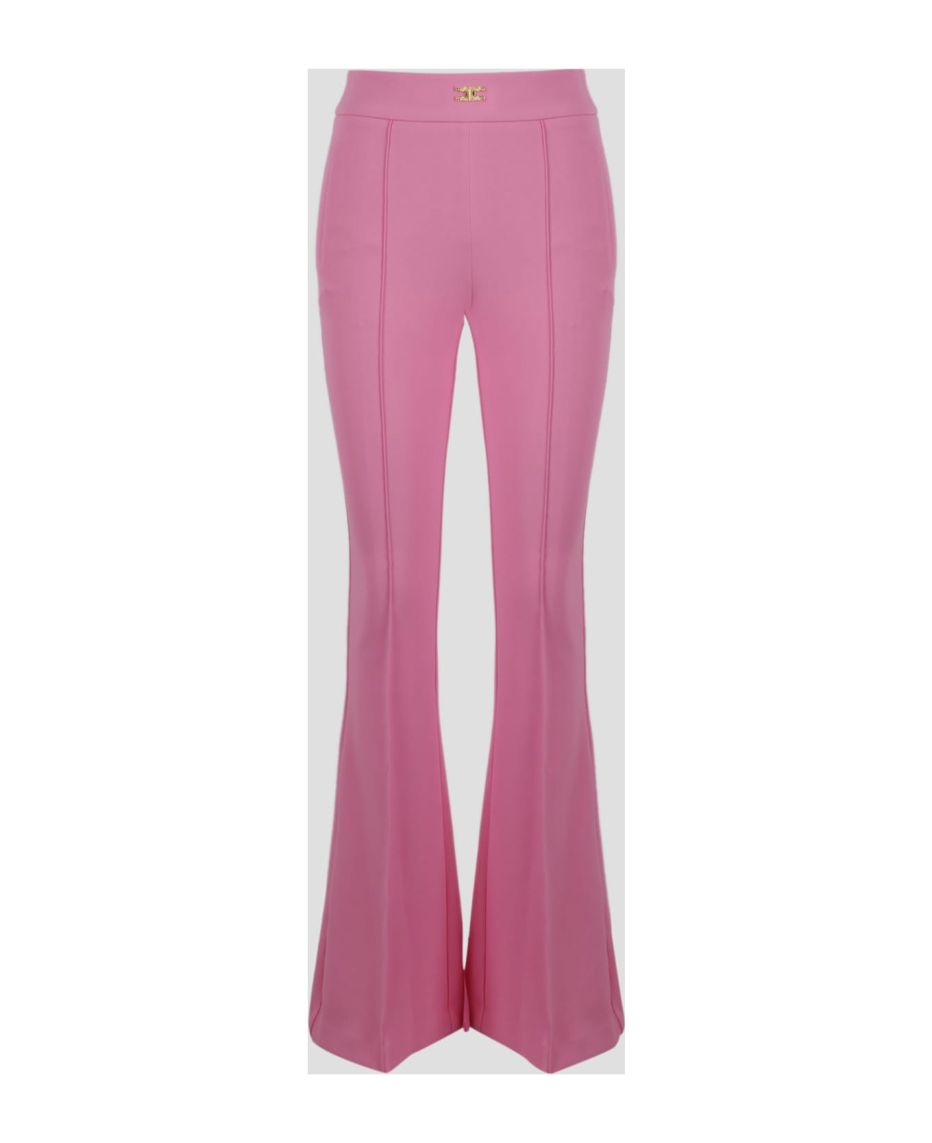 Trousers by Elisabetta Franchi, in stretch crêpe. - SS23 - Flared fit - Waist band decorated with gold metal logo - High waist - Side welt pockets - Zip closure on the side - Made in Italy - 96% Polyester, 4% Elastane