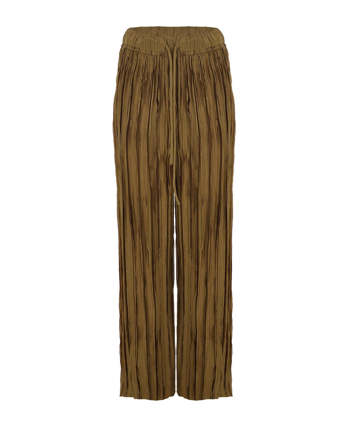 Trousers Alysi in Viscose Military green. Embossed tone-on-tone motif. Elastic waist with drawstring. Side welt pockets. Wide leg Regular fit. 100% viscose