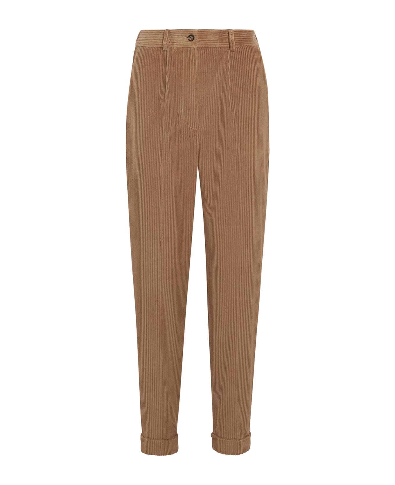 Tapered-leg Carrot trousers in white and camel cotton corduroy, entirely cut and sewn by our master tailors in Naples. With single darts and slant pockets, the front is clean and essential, while two welt pockets decorate the rear. These trousers combine practicality and style, promoting the aesthetics of relaxed elegance: the half-elastic waistband and the roomy cut of the leg offer comfort while complementing any silhouette. Ankle-length leg; 2 cm turn-up cuff. These Kiton trousers can be worn on any occasion, whether styled with a sporty look or paired with a jacket for a casual-chic ensemble. To maintain the beauty of your Kiton garment, we recommend professional laundering and pressing.