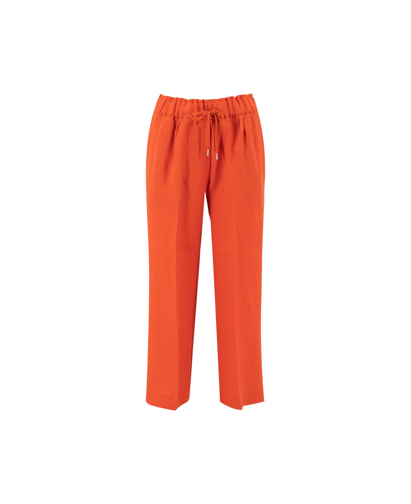 Informal style without renouncing feminine and refined taste, shiny details enrich the linen trousers, elasticated drawstring waist, regular fit.