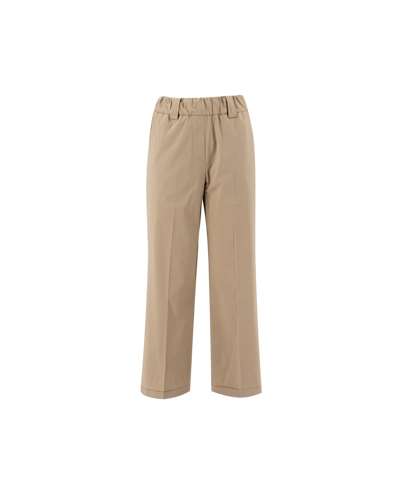 Informal style without renouncing feminine and sophisticated taste in the new cotton trousers, one back pocket, elastic waistband, two side pockets, regular fit.