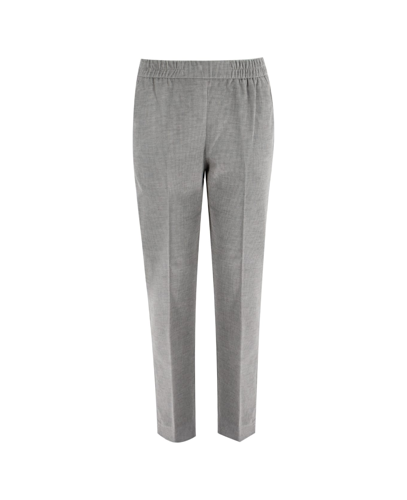 Classic cut trousers, elasticated waist, cigarette line. A perfect garment for the woman who loves casual and minimal style.