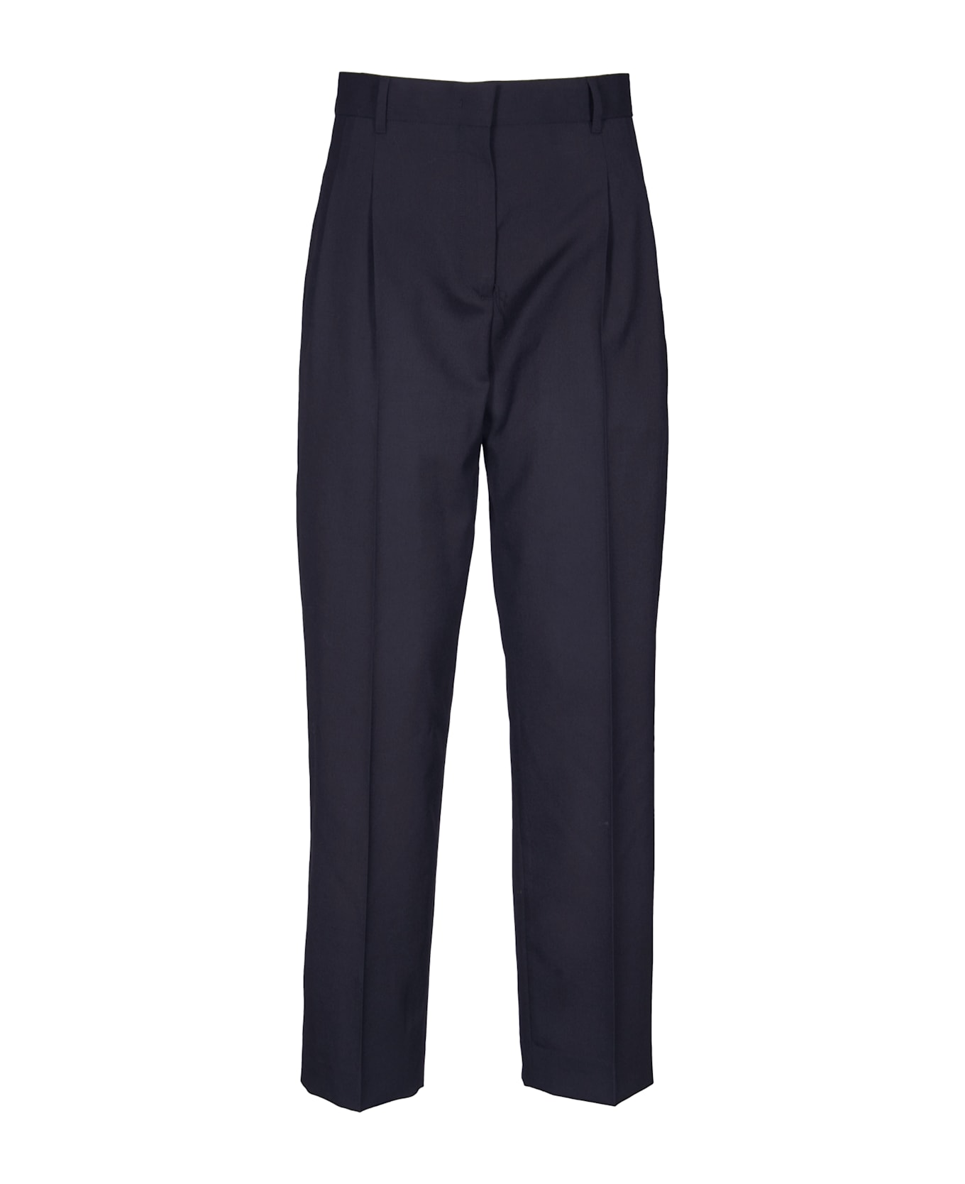 Black trousers with darts. Loops at the waist. Zip, hook and button closure. Welt pockets. Pockets on the back. Regular fit. Composition: 100% wool. Made in Portugal.