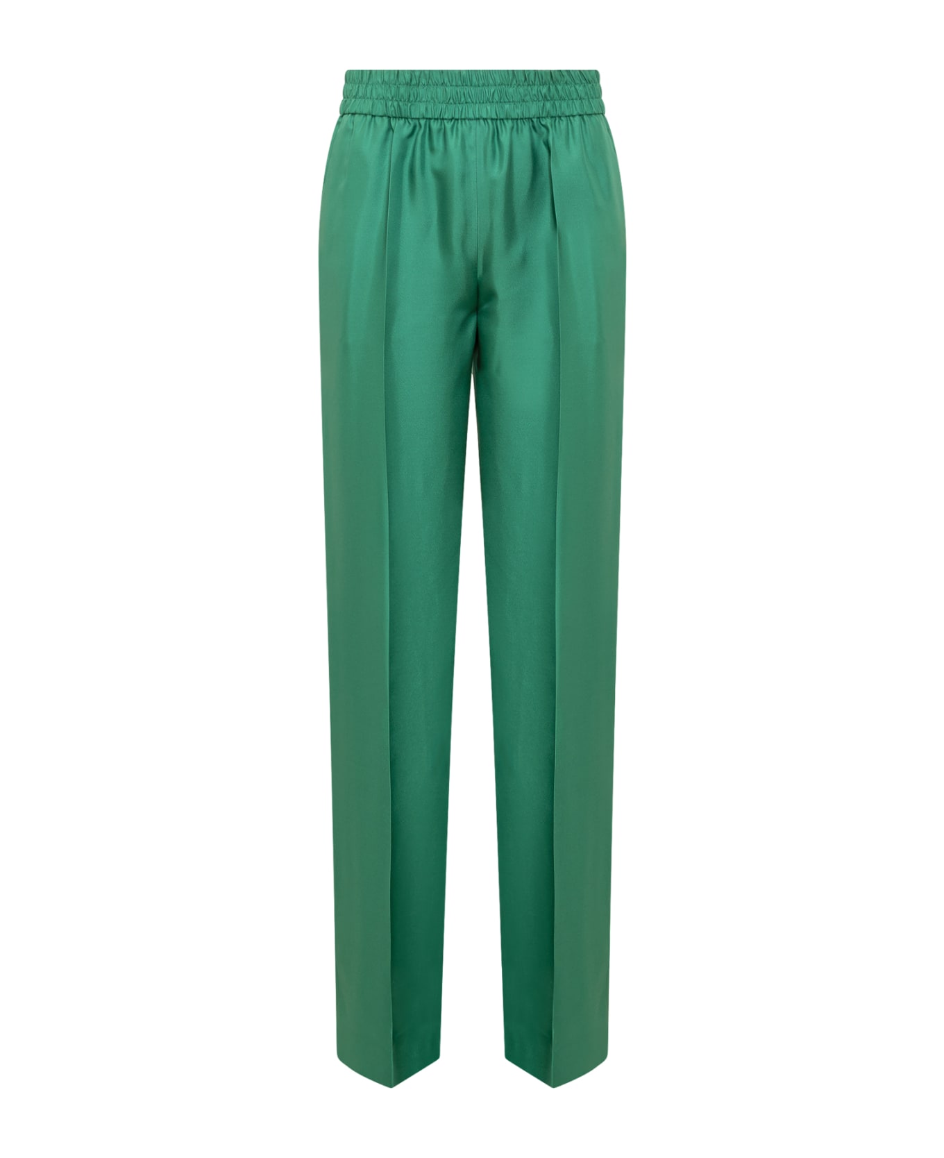 Green silk twill pants. Elasticated waist. Two side pockets. Wide leg.