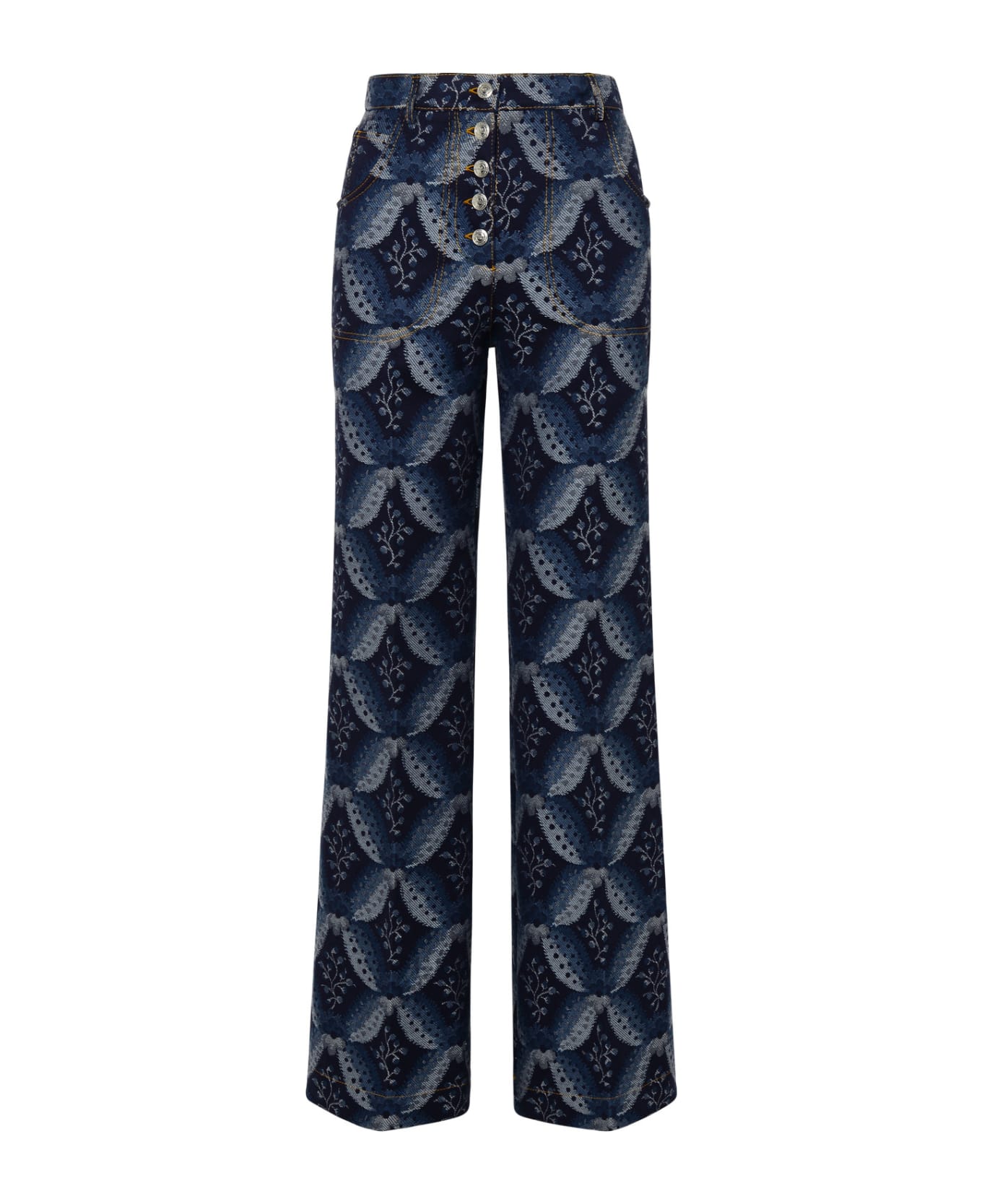 Flared high-waisted jeans with all-over jacquard print, belt loops, five pockets, and zip and button closure Composition: 60% cotton, 40% polyester