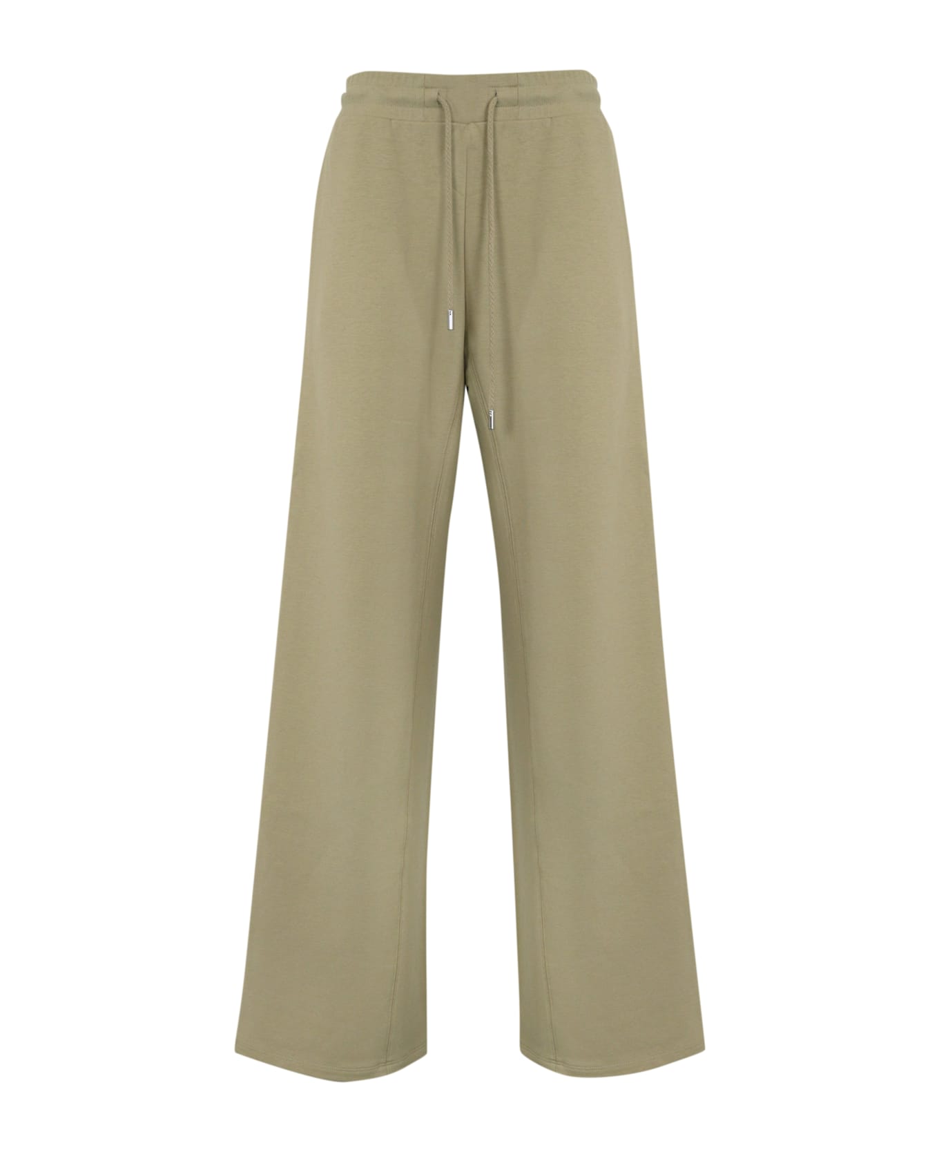 women's cotton trousers: cotton sweatshirt adjustable elastic waist with drawstring side pockets satin insert on the sides wide leg regular fit composition: 54% cotton, 44% polyester, 2% elastane