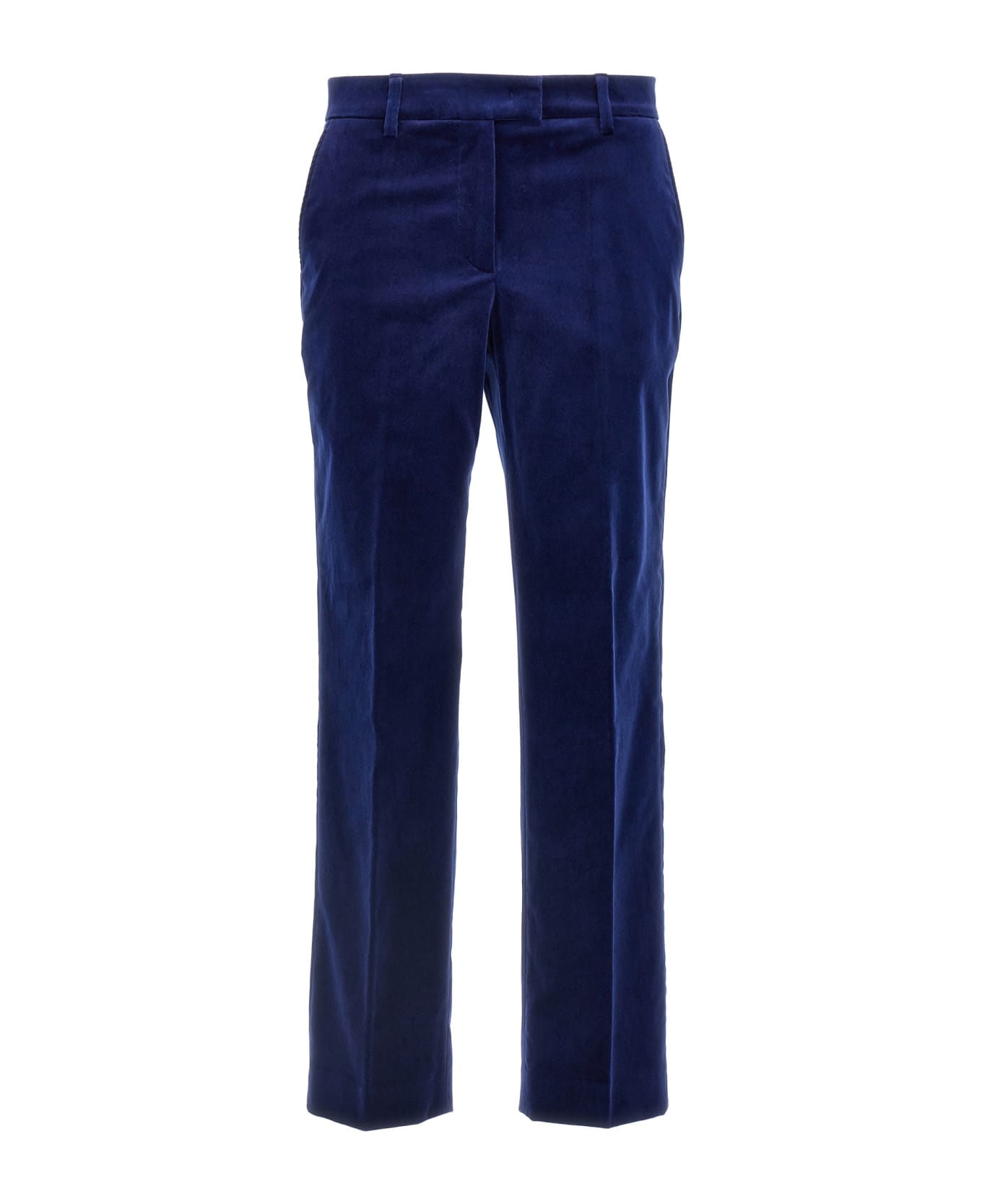 Velvet trousers, zipper, hook and button closure, pockets.