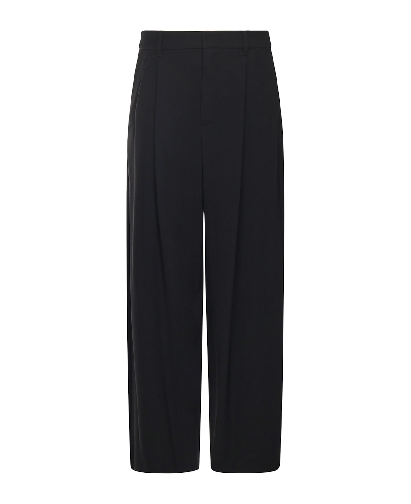 -Made of cady -High waistband closure, zip fly, and hook-and-eye closure -Side slant pockets -Belt loops -Size shown in photo is a 38 -Made in Italy -Color: Black