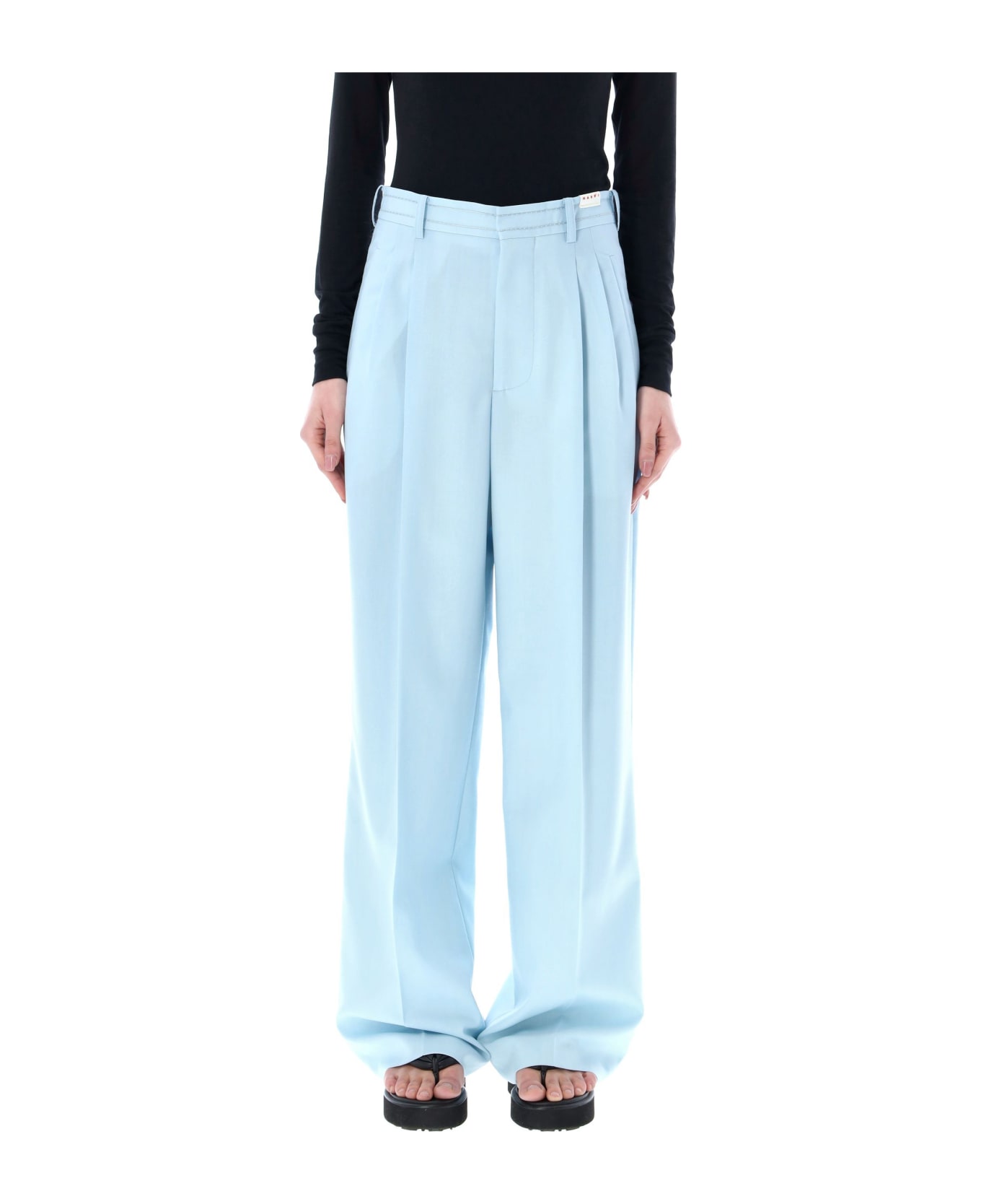 Tropical Wool Wide Leg Trousers By Marni. Featuring: Hidden Zip And Hook Fastening Belt Loops Side Pockets One Welt Pocket And One Buttoned Flap Pocket On The Back Wide Leg Regular Fit The Model Is 1,72 M Tall And She's Wearing Size 40