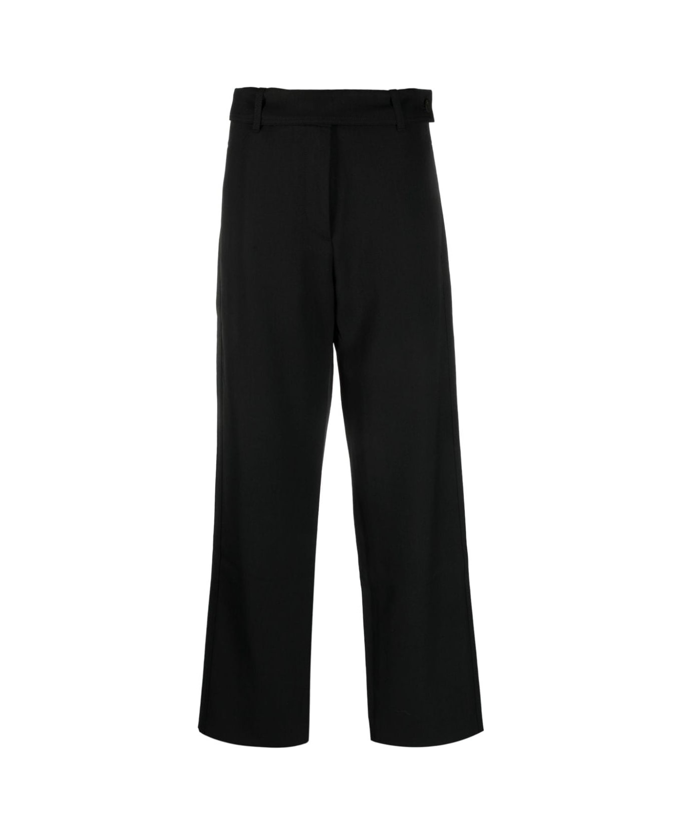 virgin wool wide-leg trousers from STUDIO NICHOLSON featuring black, virgin wool, high waist, side button fastening, two side slash pockets, wide leg, two rear patch pockets and two side slash pockets.