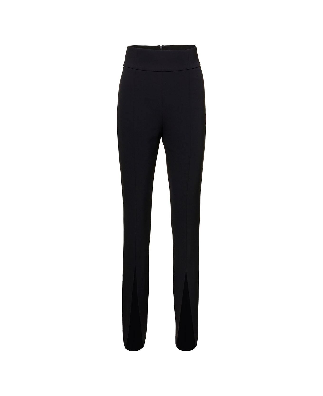 'zannone' Black Slim Pants With Front Splits In Stretch Polyester Woman