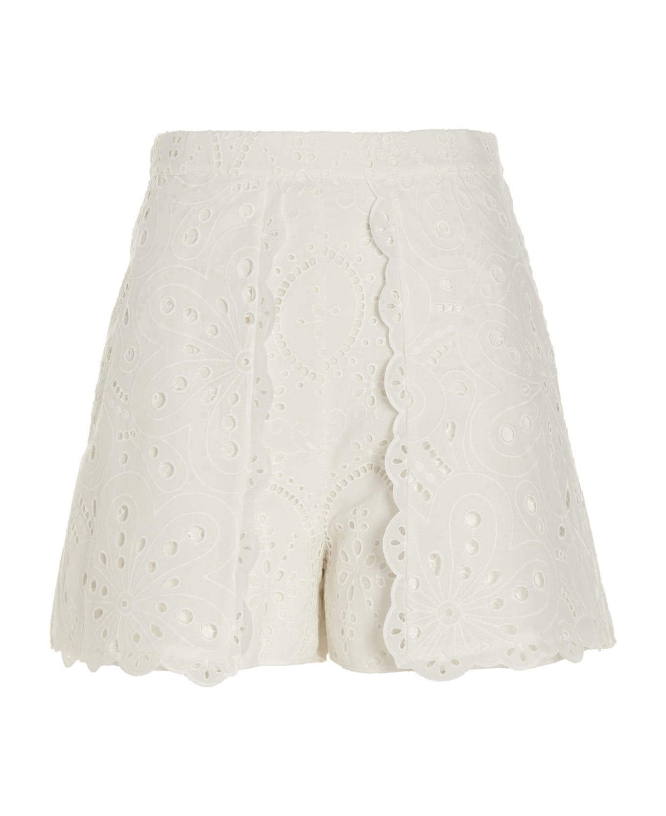 White fruition 'alida' Shorts from Charo Ruiz 'Alida' cotton blend shorts with embroideries and openwork details, back zip closure.