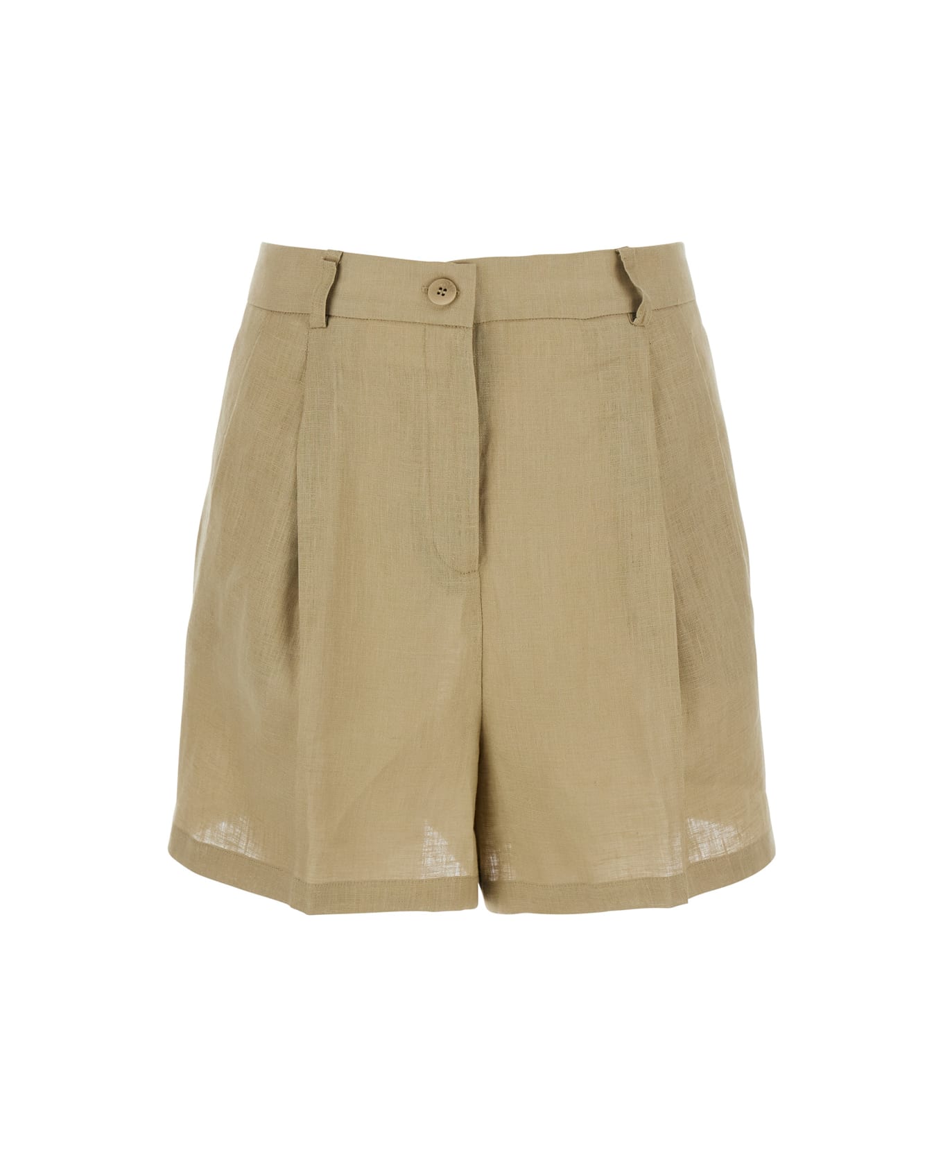 Beige Shorts With Belt Loops And Button Closure In Linen Woman