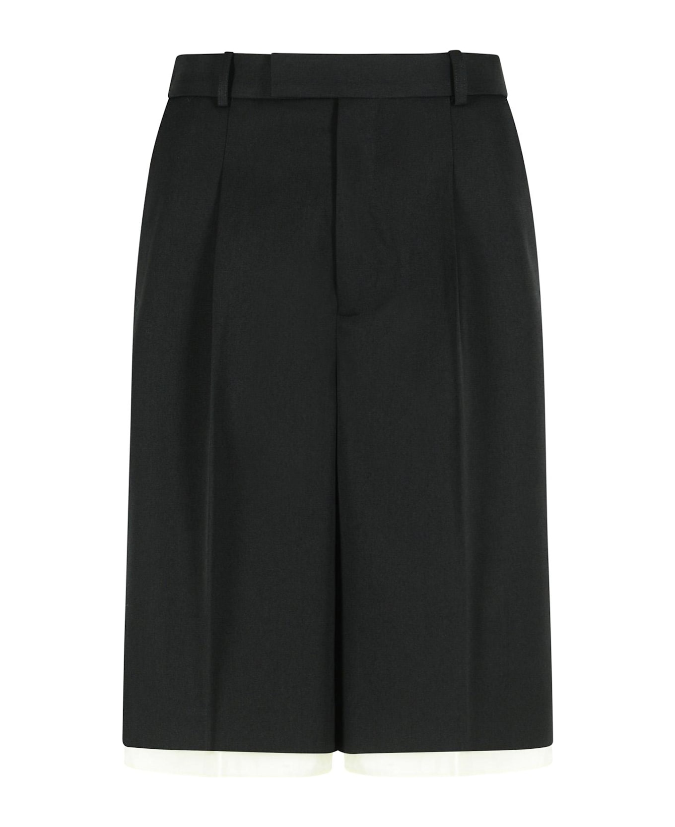 Belt loops, hook, button and zip closure, front crease on the leg, side welt pockets, contrast viscose lining visible on the hem, two back welt pockets Composition: 55% polyester, 45% virgin wool