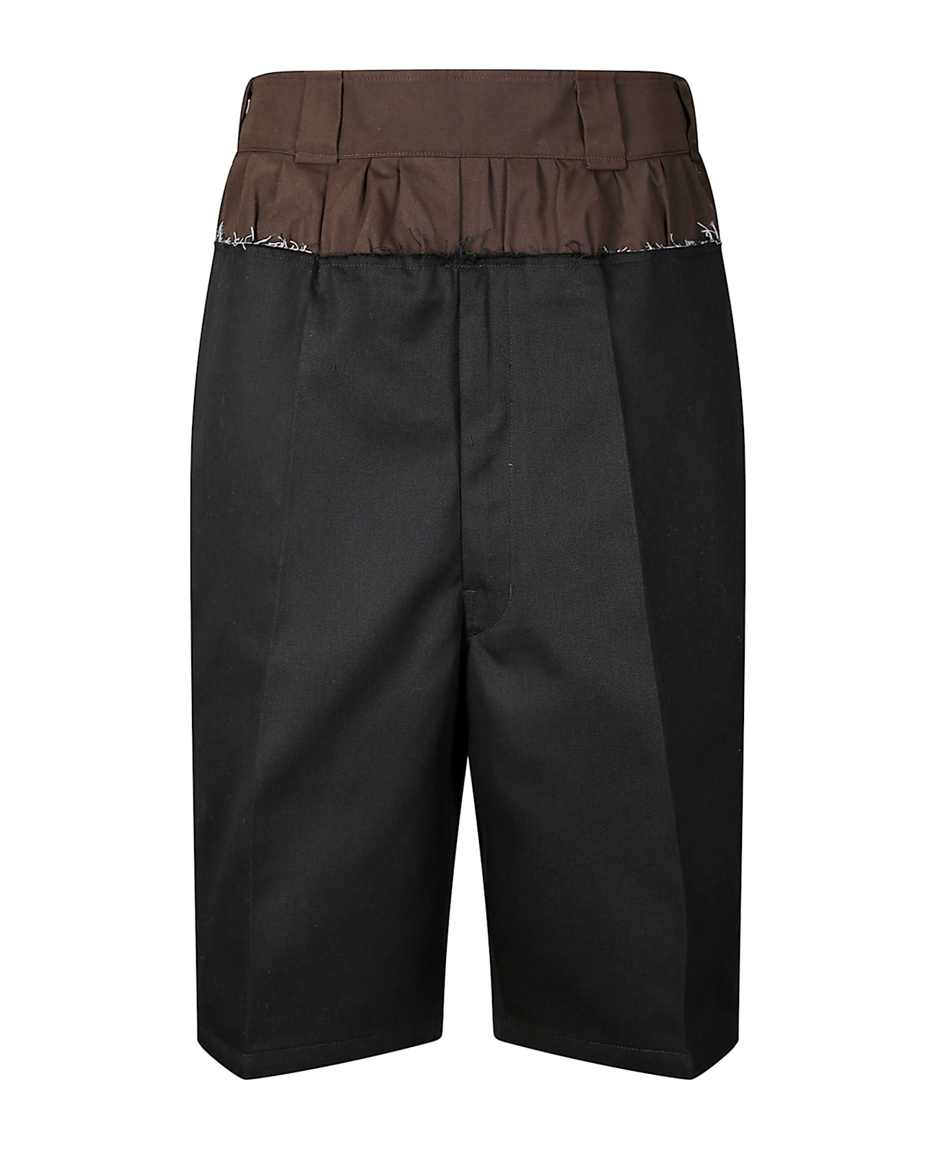 Black Shorts With Layered Design And Side Button Closure In Cotton Blend Woman