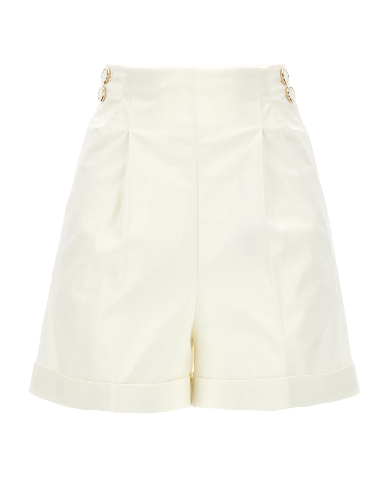 Cotton shorts with side button closure, turn up hem and pockets.