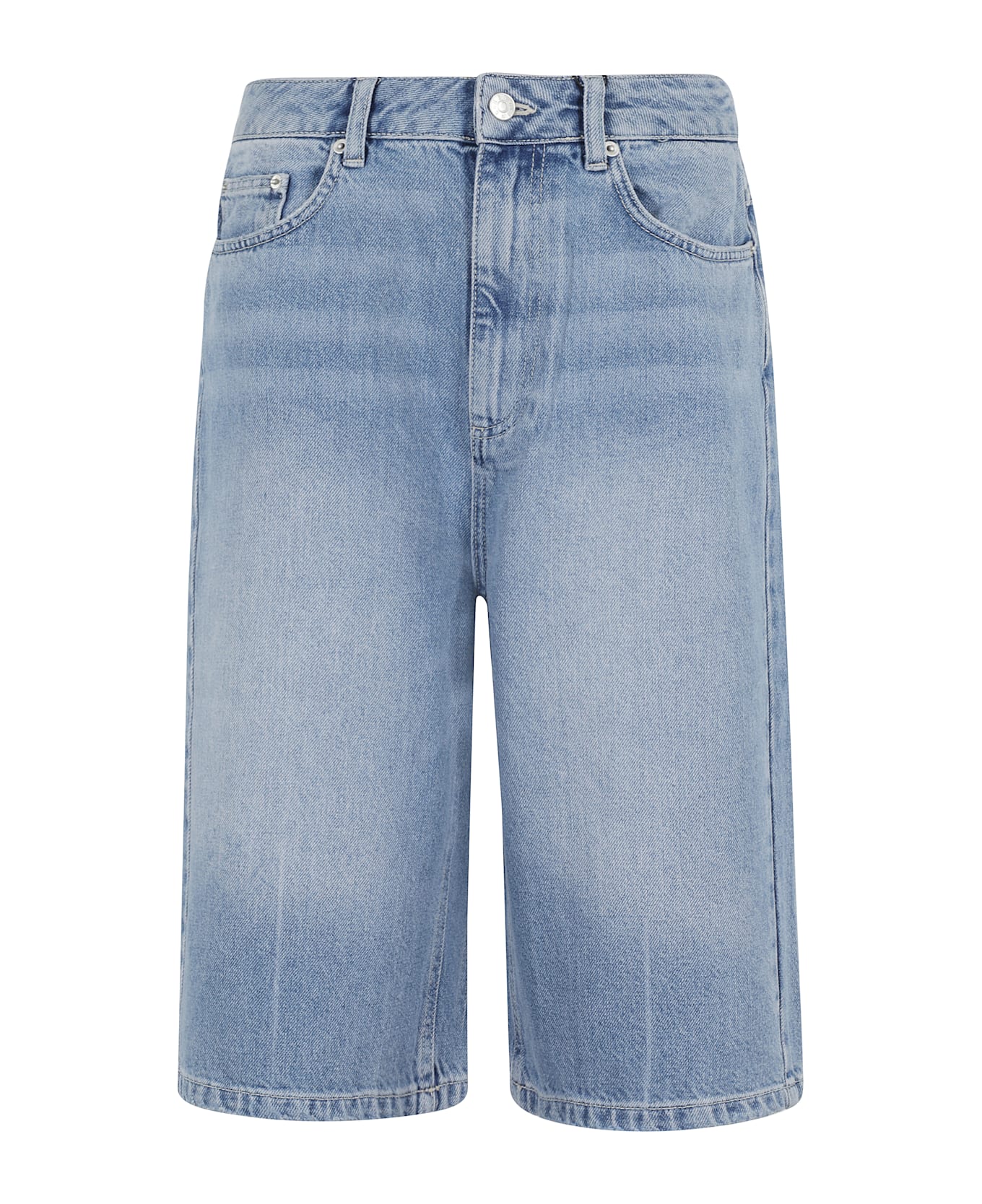 Emily Bermuda Shorts - Herskind - Indigo color - Mid-rise waist with belt loops - Wide leg - Five-pocket pattern - Front zipper and button closure - Loose fit