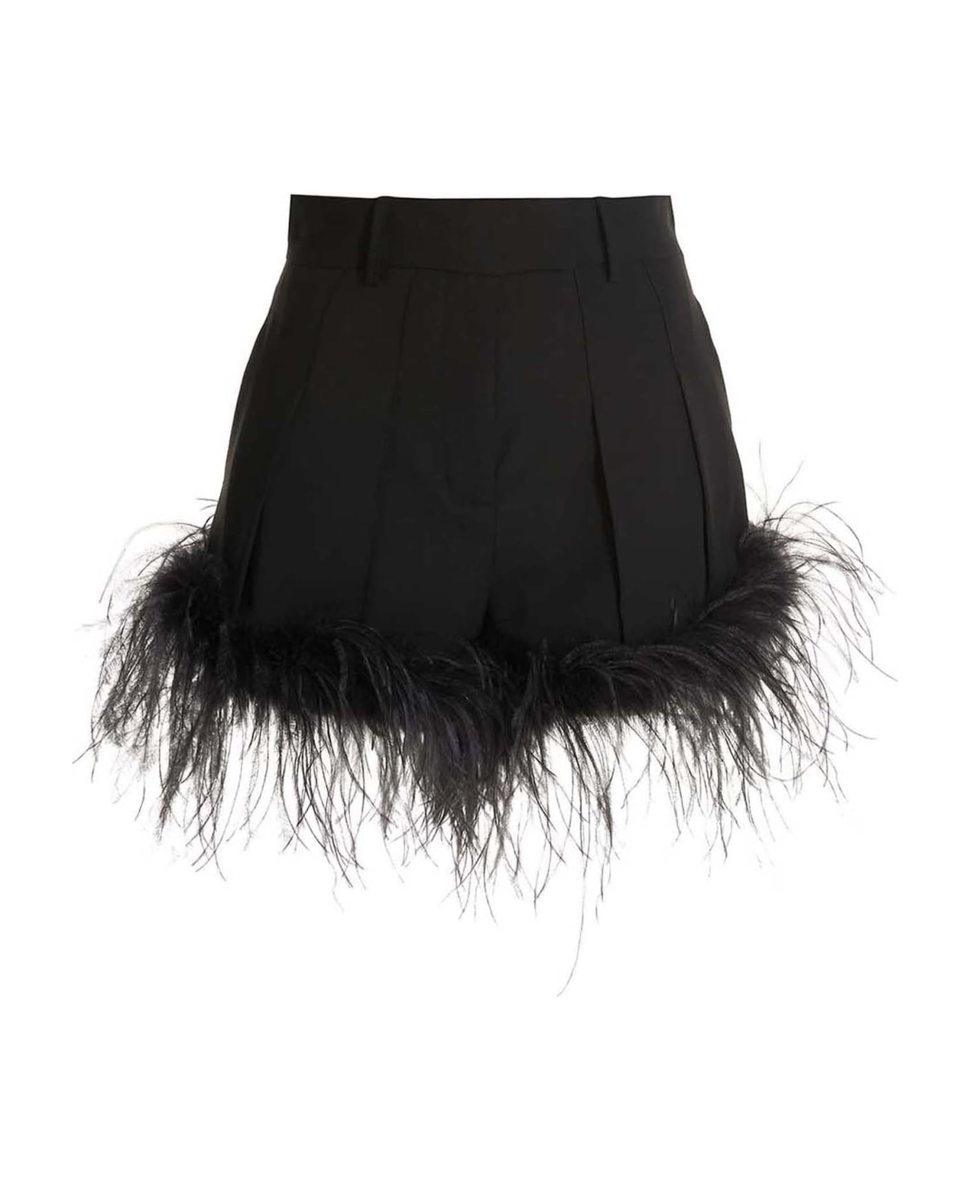 Wool blend shorts with ostrich feathers at the hem, zip, hook and button closure, pockets. on closure, pockets.