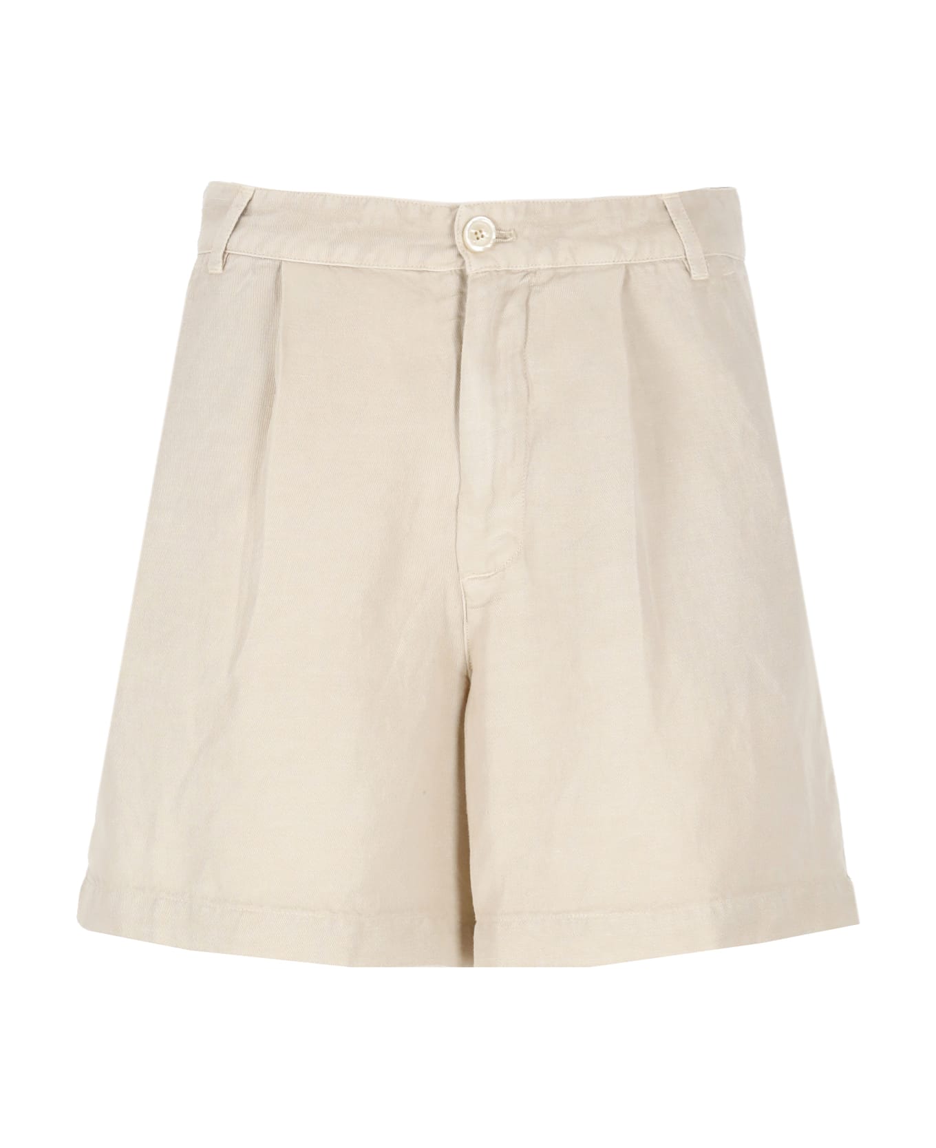 - Beige 120% Linen bermuda shorts for woman - Belt loops - Two front slit pockets - One rear welt pockets - Front zip and buttons fastening