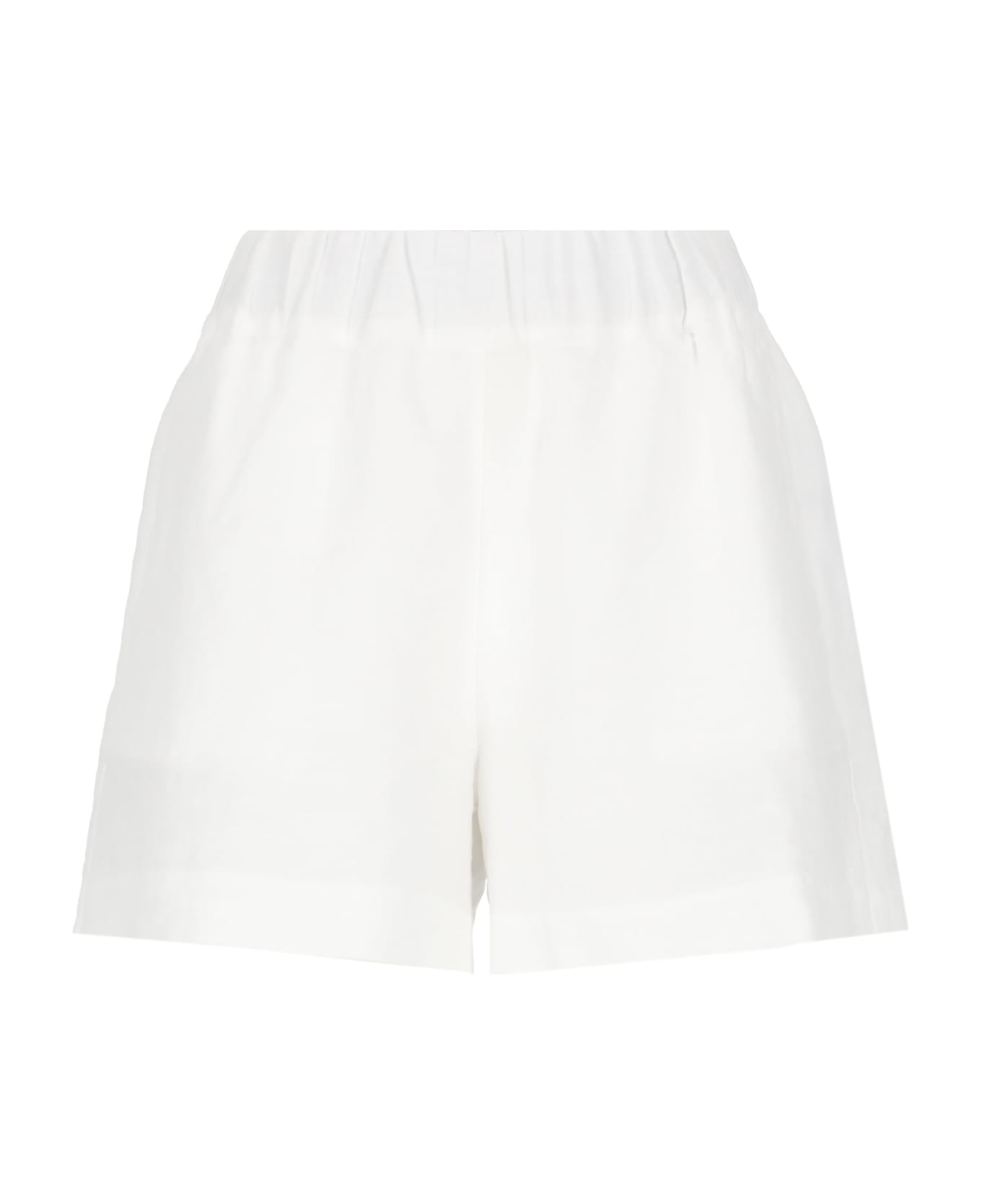 - White 120% Lino linen shorts for woman - Elastic waist - Two side slit pockets - One rear button pocket