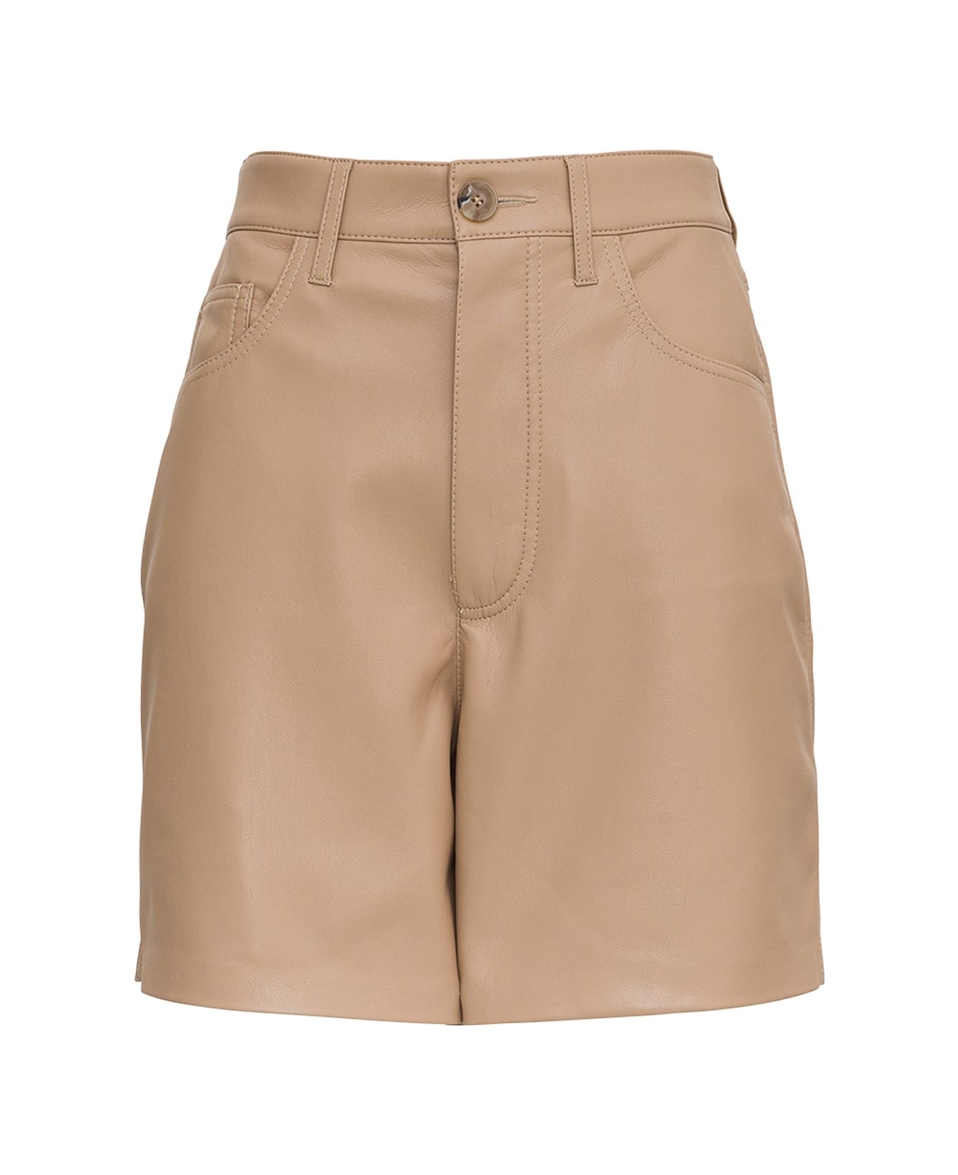 Shorts Beige Vegan leather Five pockets Front zip and button closure Belt loops