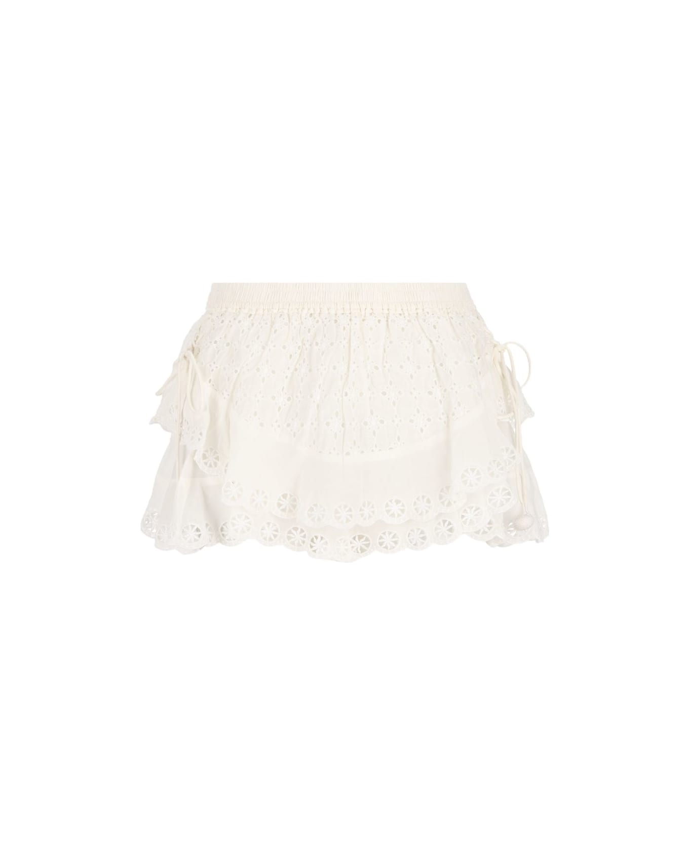 Jocadia shorts in organic cotton and floral lace, Elastic waist, Ruffles with lace ribbon Composition: Cotton, 100%
