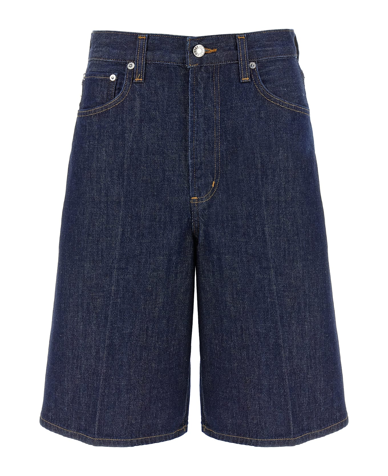 'Nolan' cotton denim bermuda shorts, high waist and narrow model with wide leg, stretched pleat, zip and front button closure, five pockets. SUSTAINABLE: This product is made of regenerated cotton.