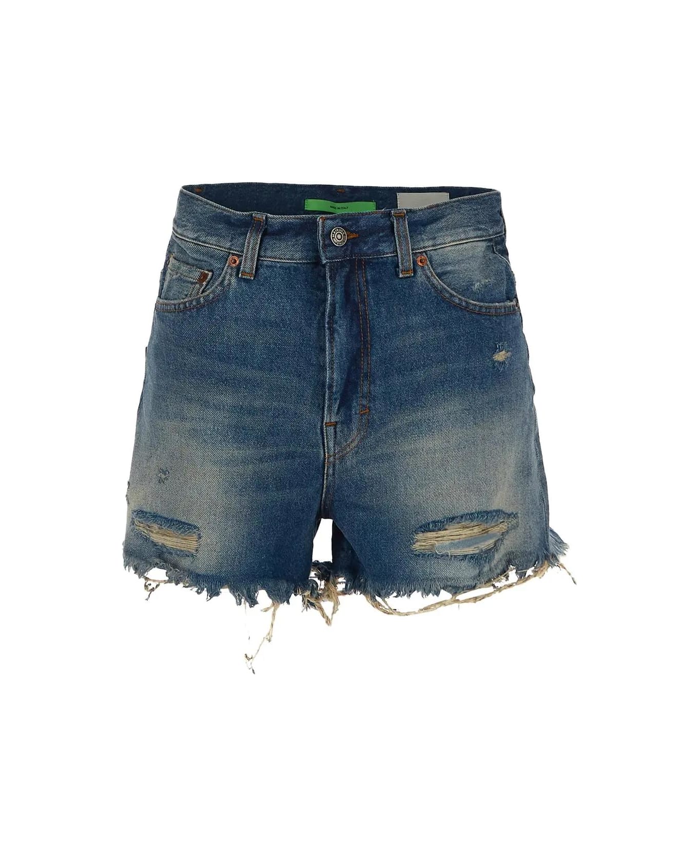 Haikure shorts in denim with belt loops. The item is featured by zip and button closure, side pockets and rear patch logo.
