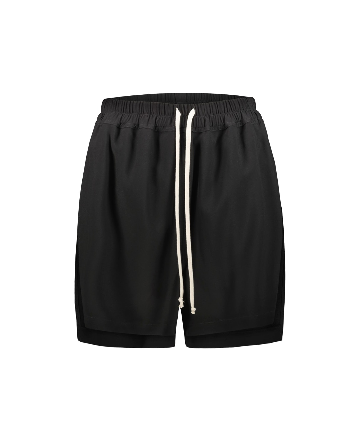 Rick Owens shorts boxers in viscose, above-knee length, loose fit, elasticized waistband with drawstring, two side pockets and splits in the hem at the side seams.