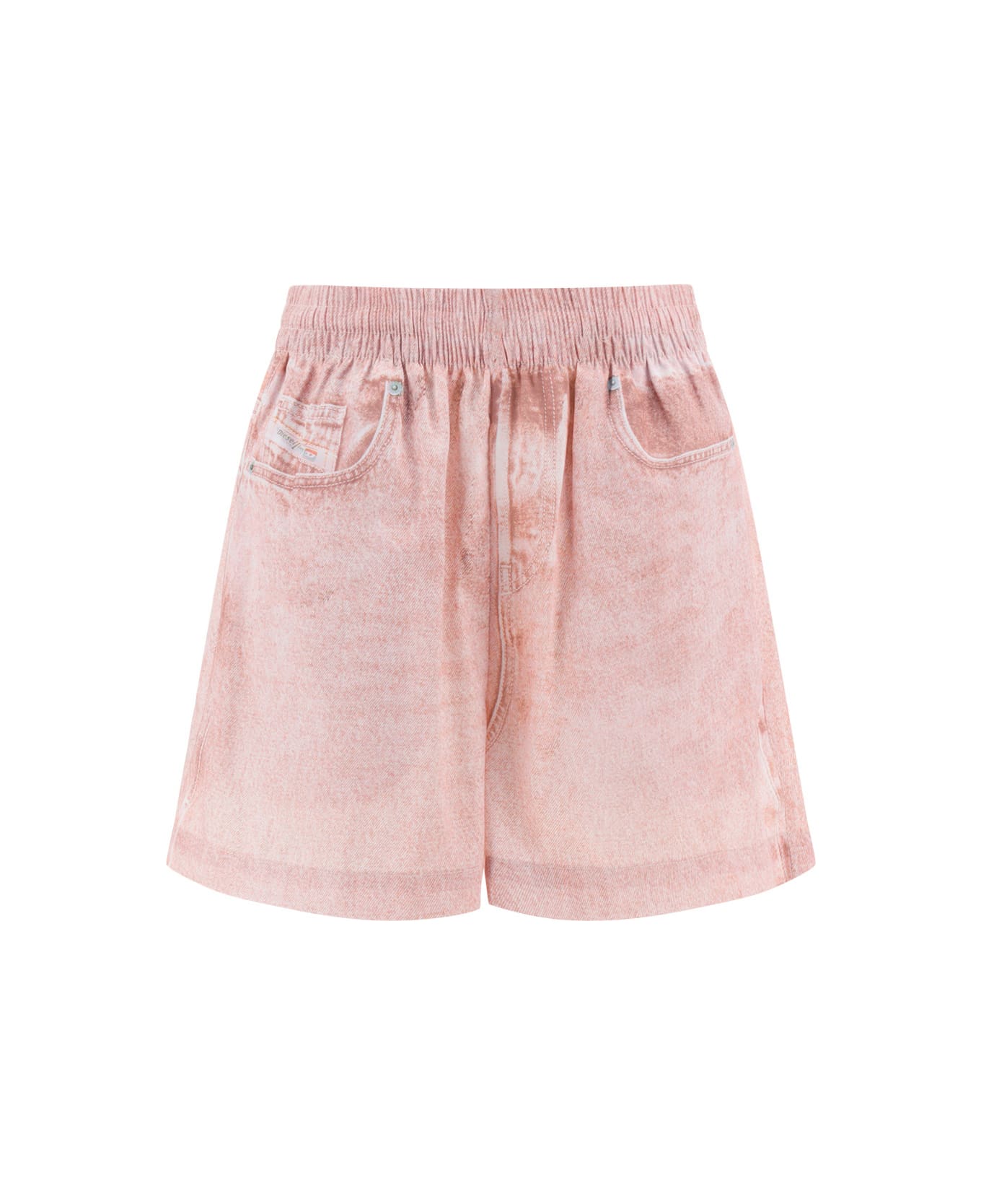 Shorts by diesel, elasticated waistband, all-over printed trompe-l'oeil jeans pattern, two side welt pockets, regular fit. Composition: 100% % Polyester