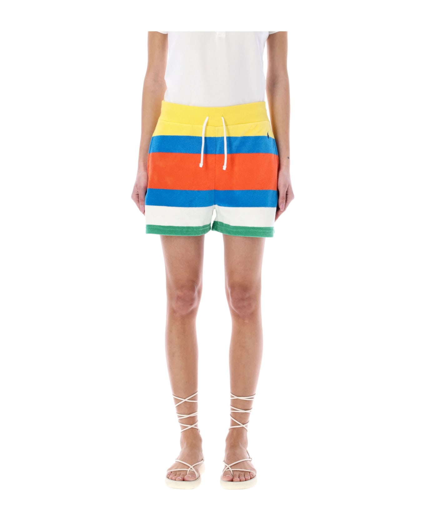 Cotton-blend Striped Shorts By Polo Ralph Lauren. Featuring: Ribbed Waistband With Contrasting Drawcord Slit Pocket Pony Embroidery Model Is 1,72 M Tall And She Is Wearing Size S