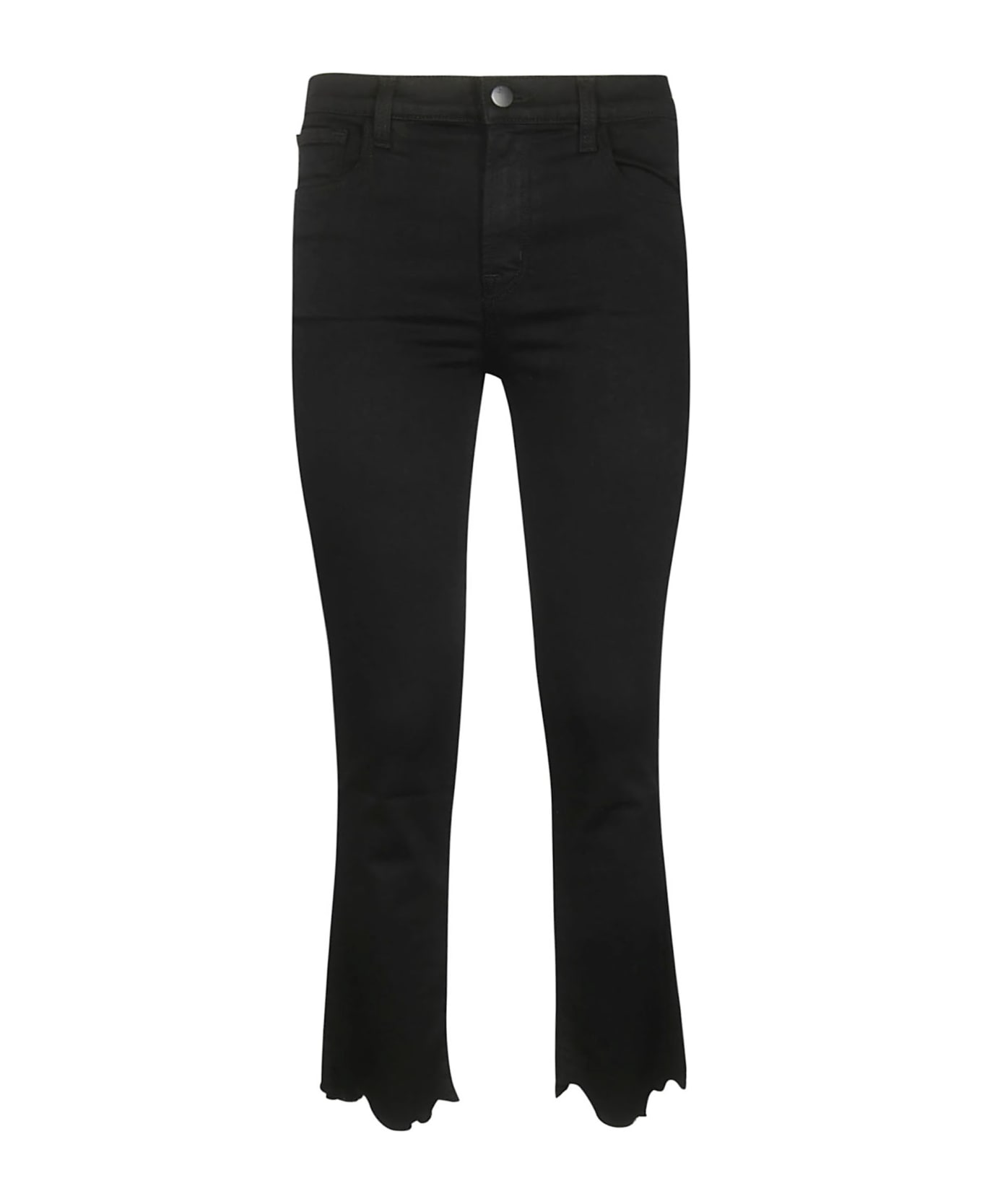 Skinny Fit Trousers from JBrand: Black Skinny Fit Trousers with button and zipper closure, fringed cuffs, side pockets and rear patched pockets.