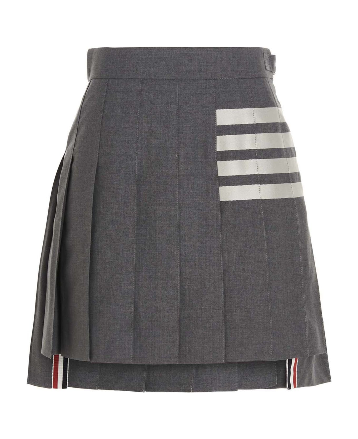 '4 Bar' wool, pleated skirt with side zip and striped cupro lining. Composition: 100% wool
