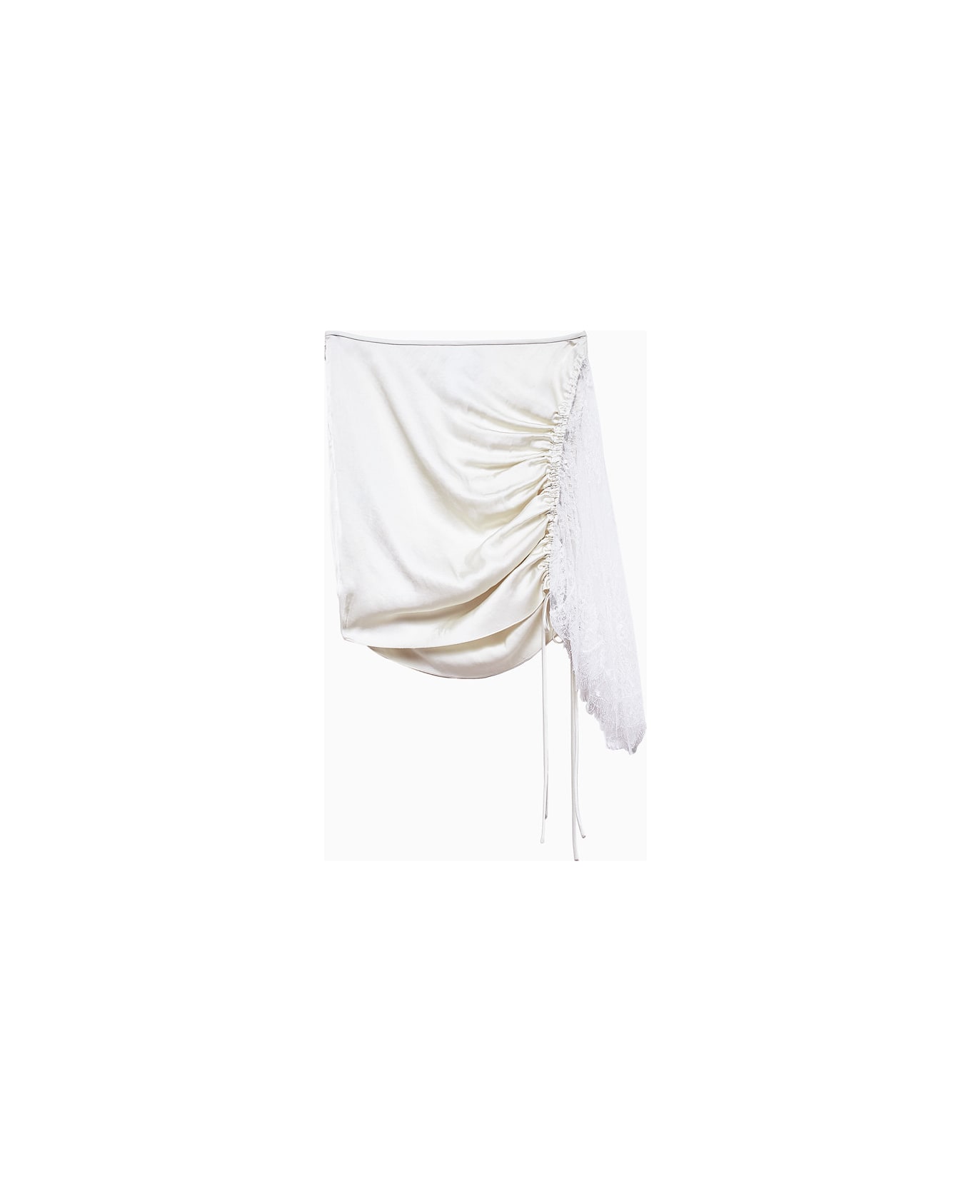 made in italy skirt in one-color fabric. high waistband with side concealed zip. draped side with tonal drawstring. lace insert at side. regular fit. composition: 100% polyester.