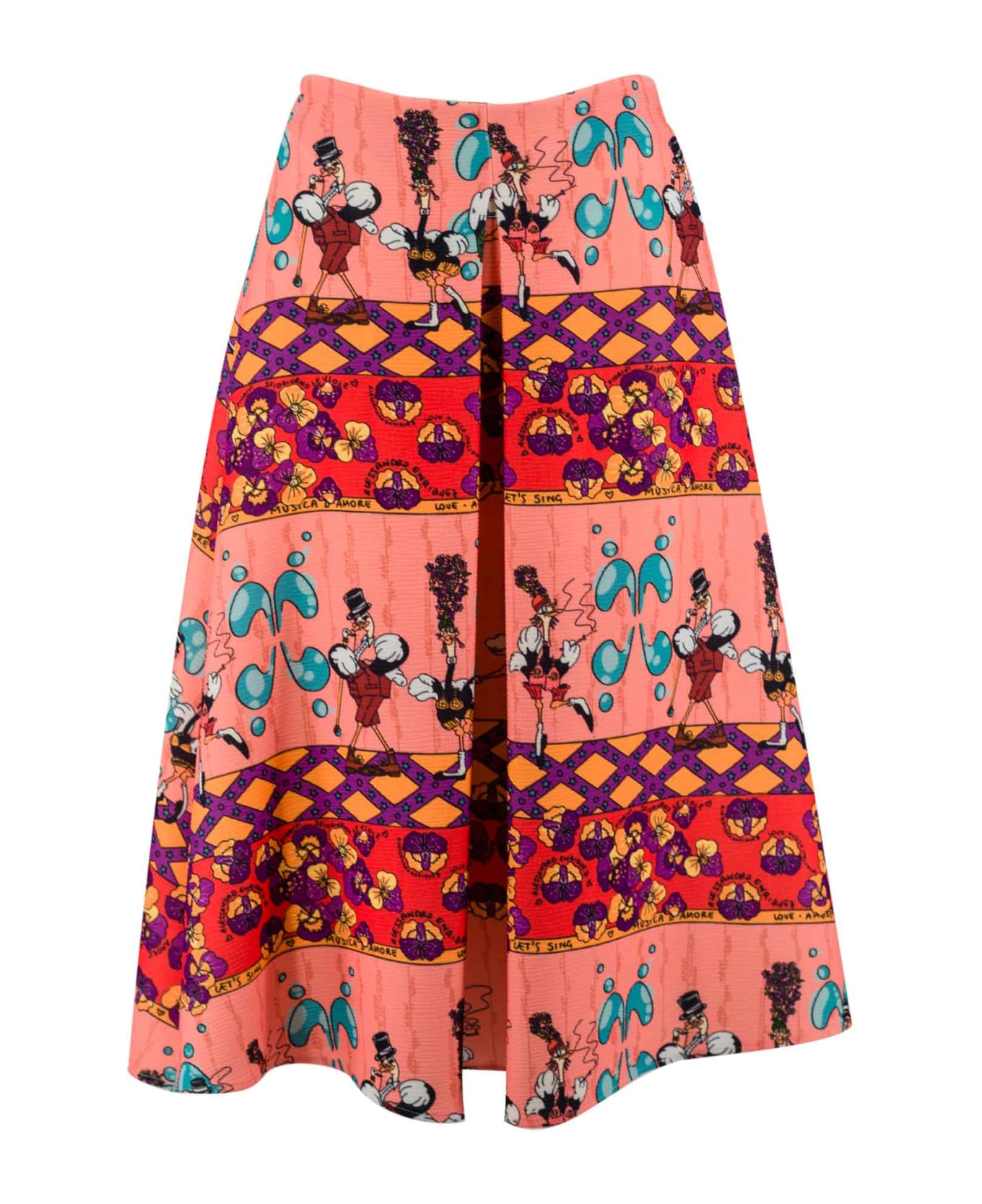 High waist, all-over print, mid-length, concealed side zip fastening.