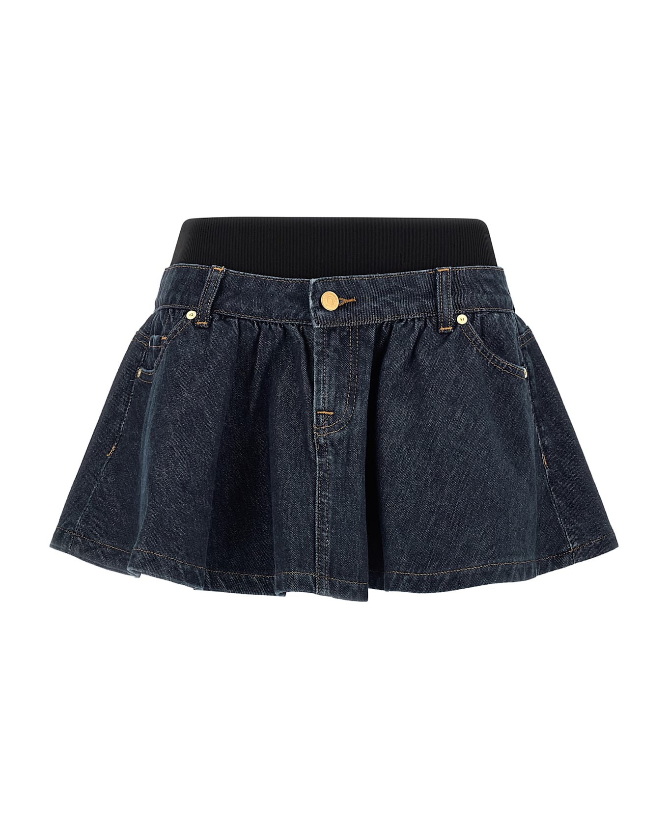 'Banded Mini' cotton denim skirt with contrast stitching, ribbed stretch fabric waist insert, zip and front button closure, five pockets, wheel model. Composition: 100% cotton
