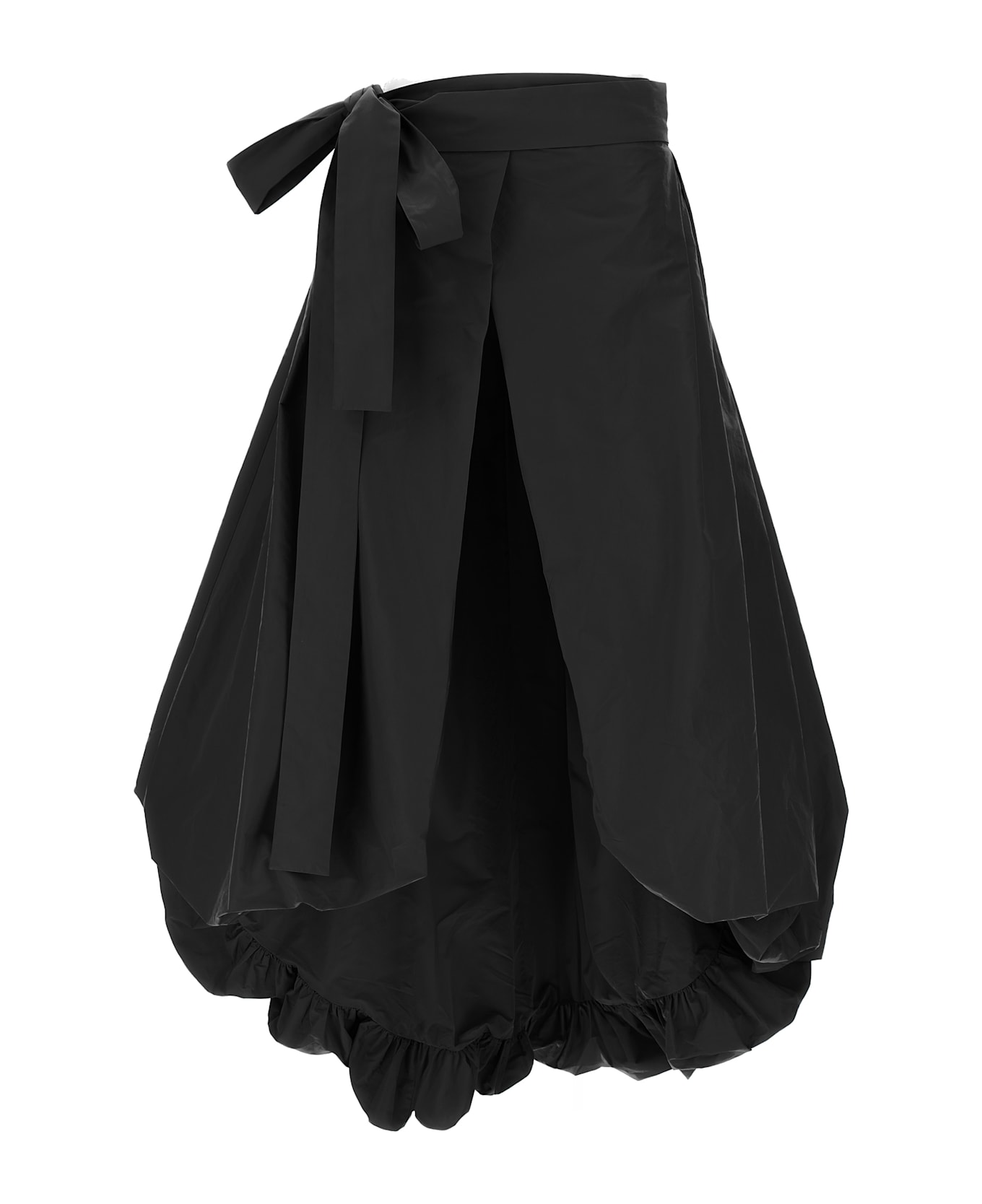 Long 'Barbagianni' taffeta skirt, asymmetric wallet model with curls on the hem, belt closure to be tied in a bow.