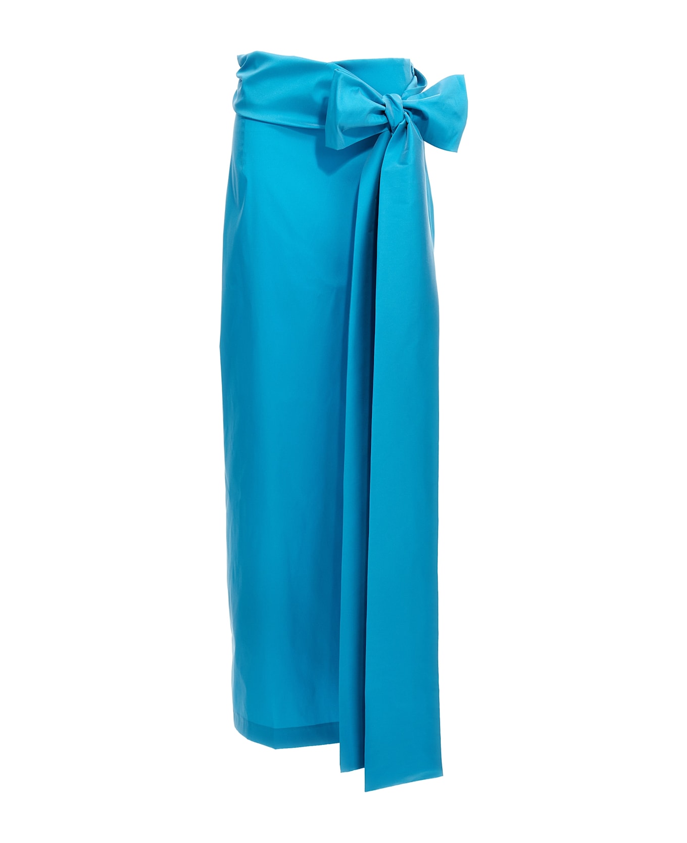 'Bernard' skirt in taffeta effect fabric with bow detail at the waist, side zip closure, back split.