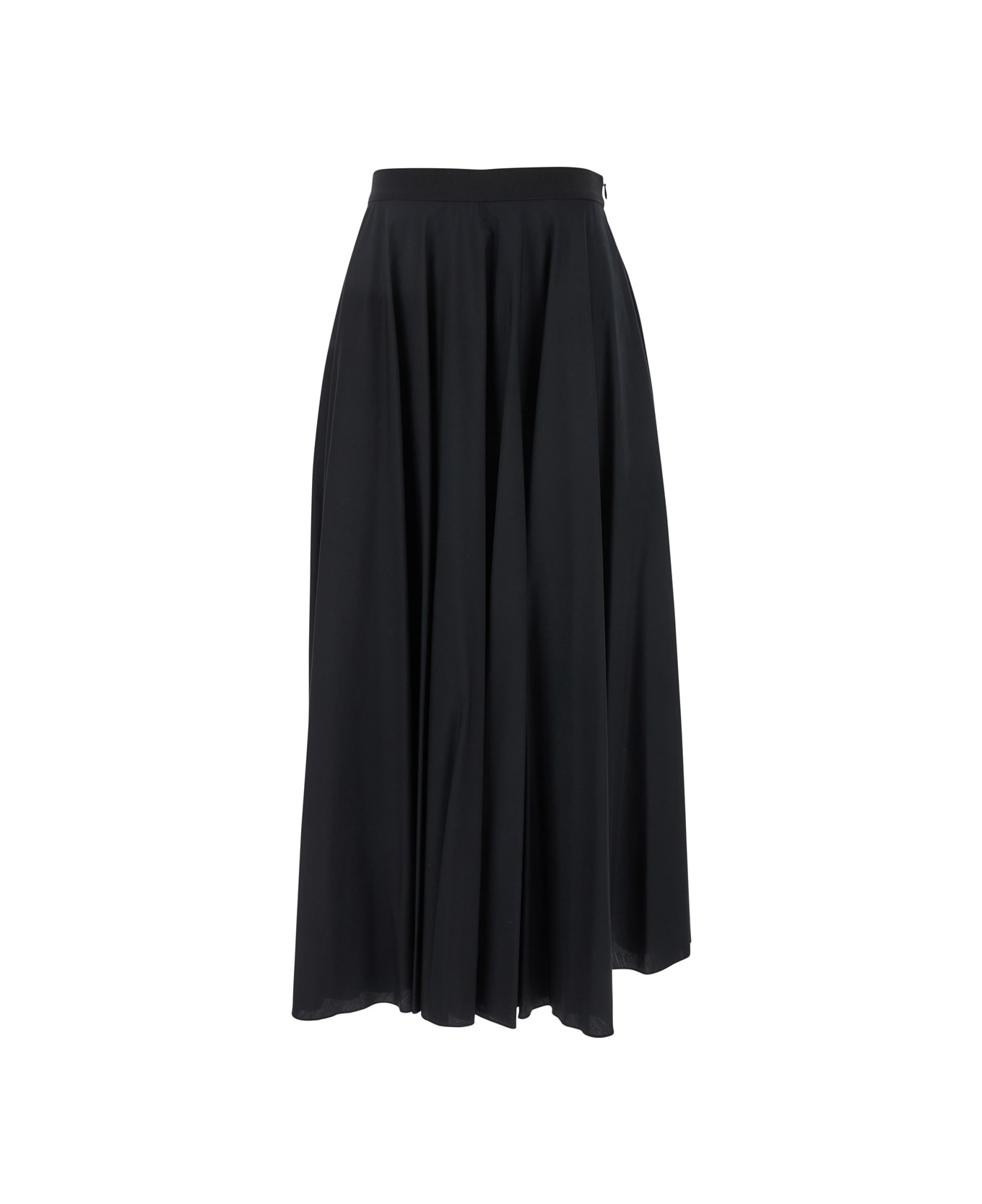 Black Long Skirt With Draped Details And Side Zip Closure In Cotton Woman